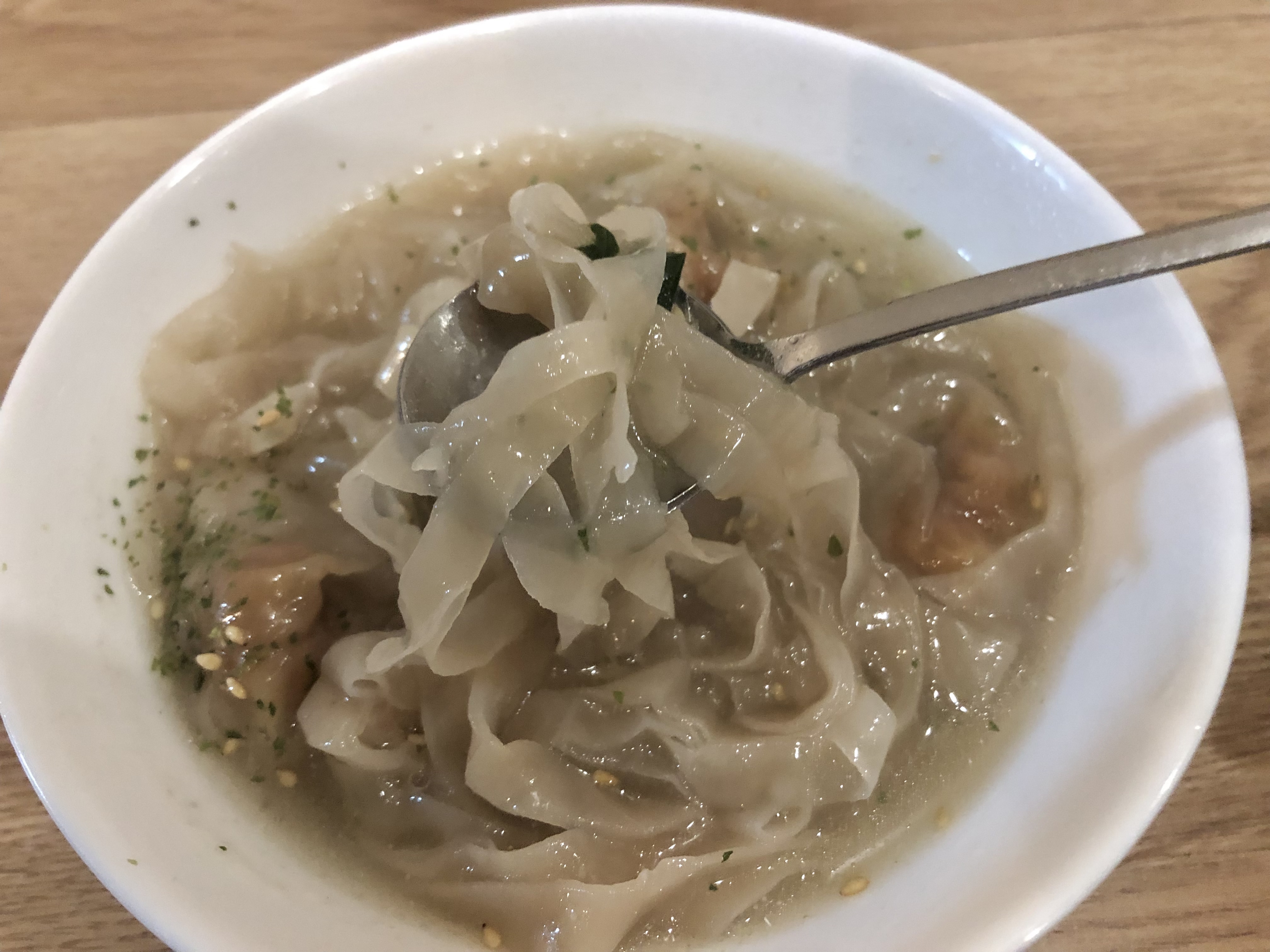 喜欢吃肉燕的朋友,千万别错过这款肉燕捞面,类似云吞面的原理,把肉燕皮子做成了饺子和面,很适合低碳生酮饮食的朋友们。吃起来呢皮子有韧性,脆脆的,很爽滑,咸淡适中。