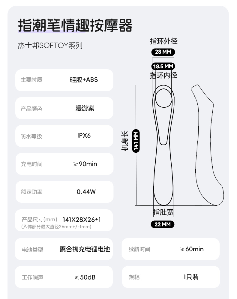 【直达敏感】杰士邦Softoy系列指潮笔情趣按摩器