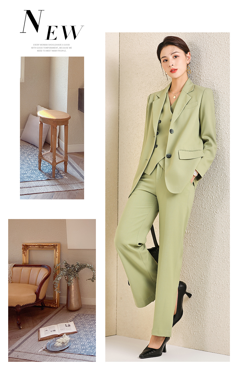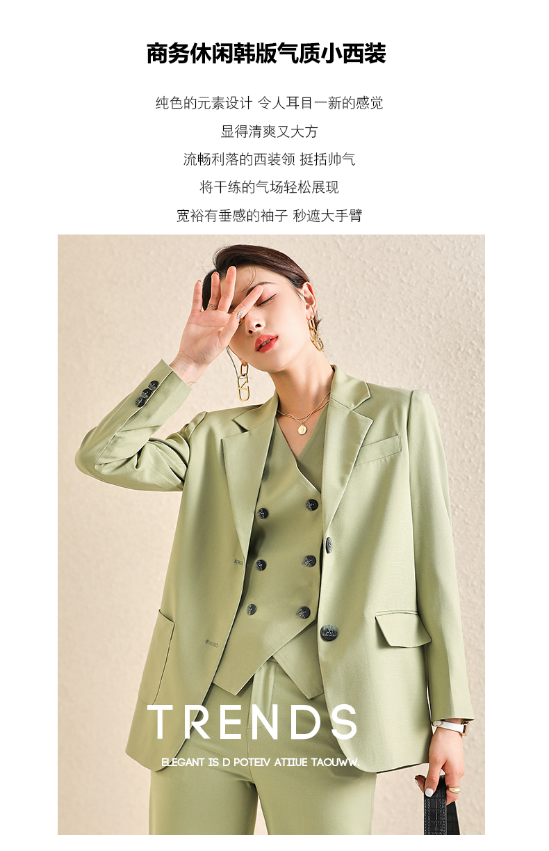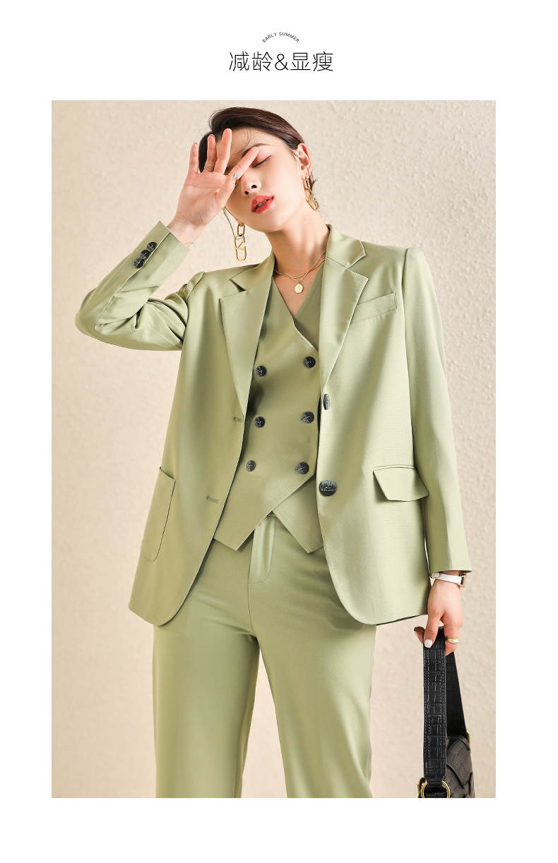 绿色职业套装女秋冬款时尚气质女神范高端正装西装显瘦减龄两件套
