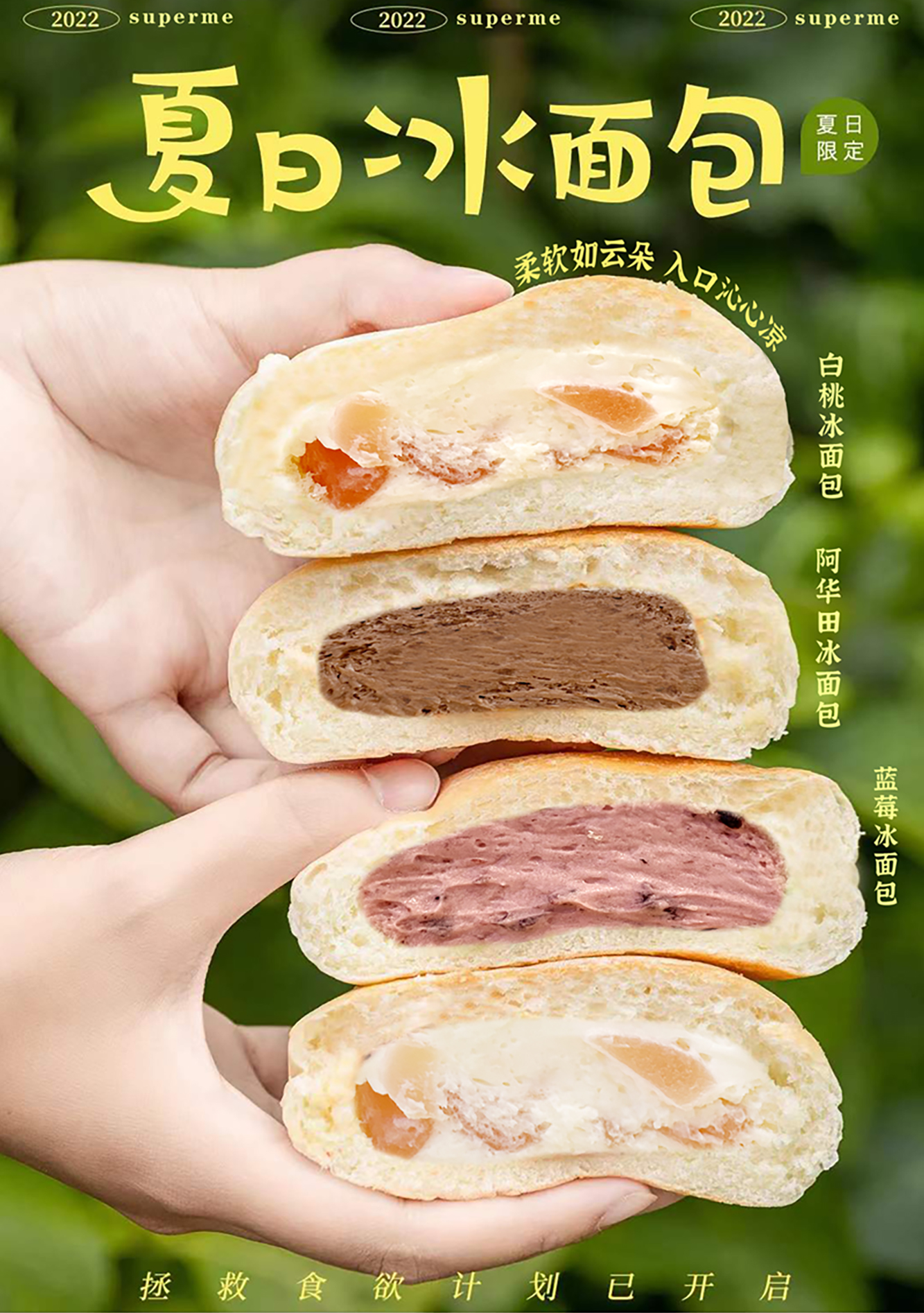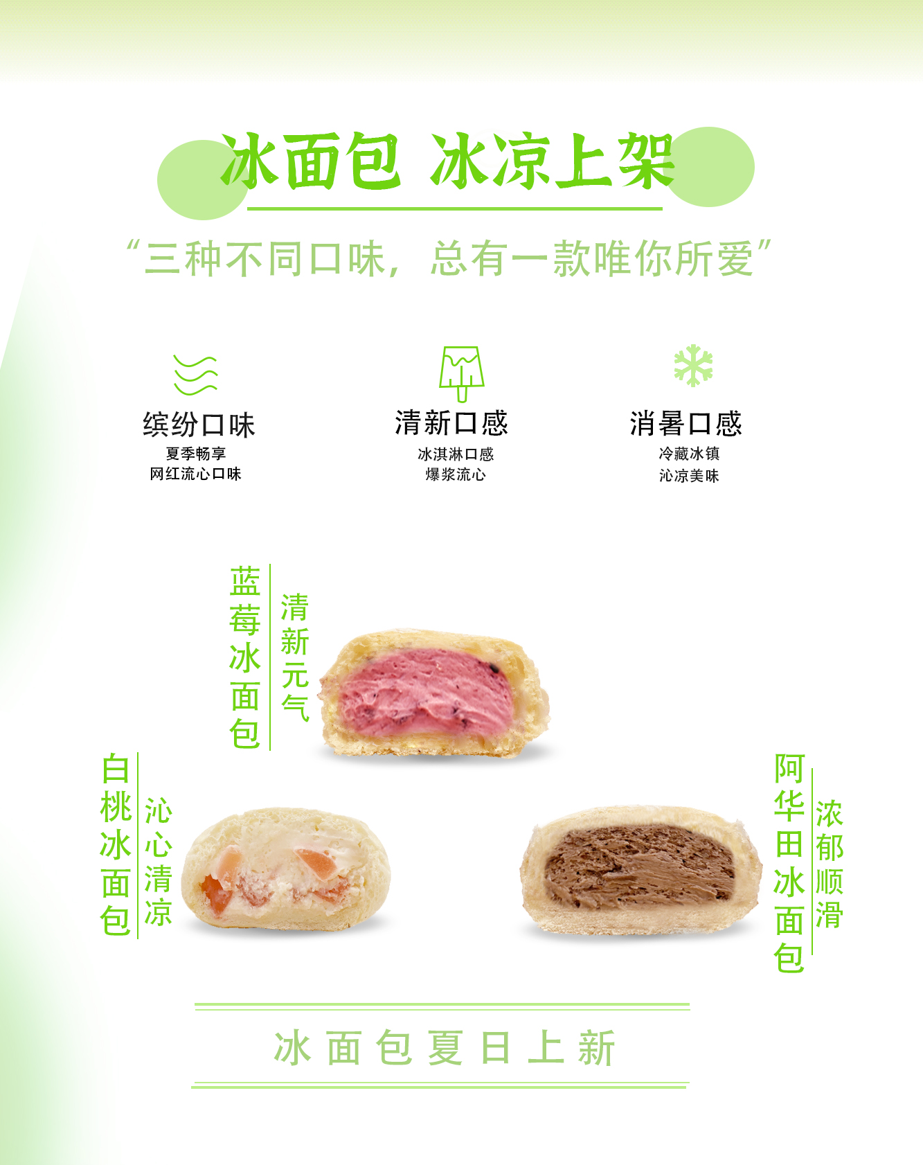 口味:蓝莓冰面包、白桃冰面包、阿华田冰面包