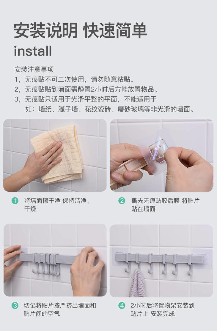 【2只装】厨房浴室挂钩架免打孔挂钩粘钩卫生间墙壁墙上挂钩