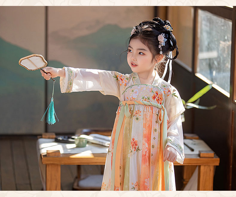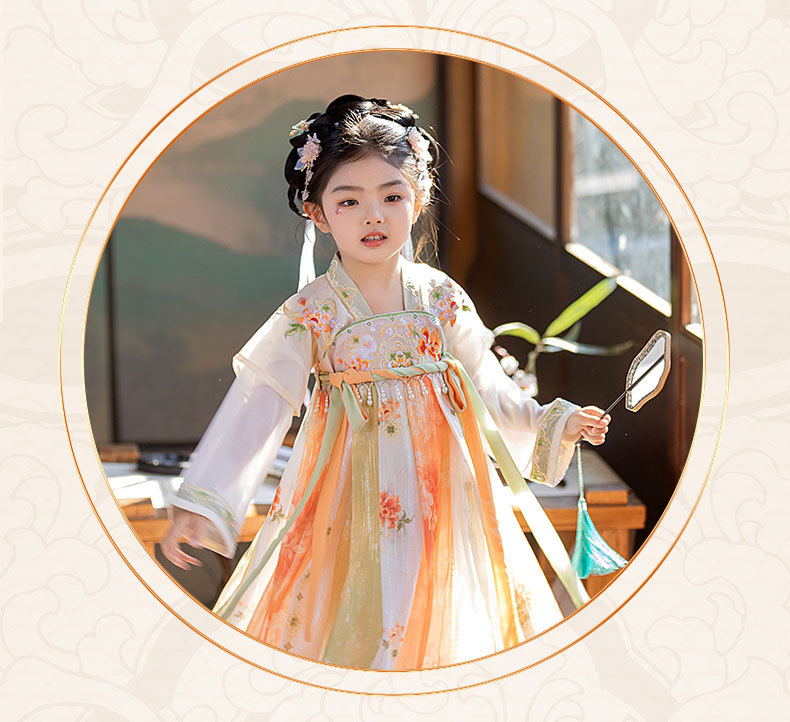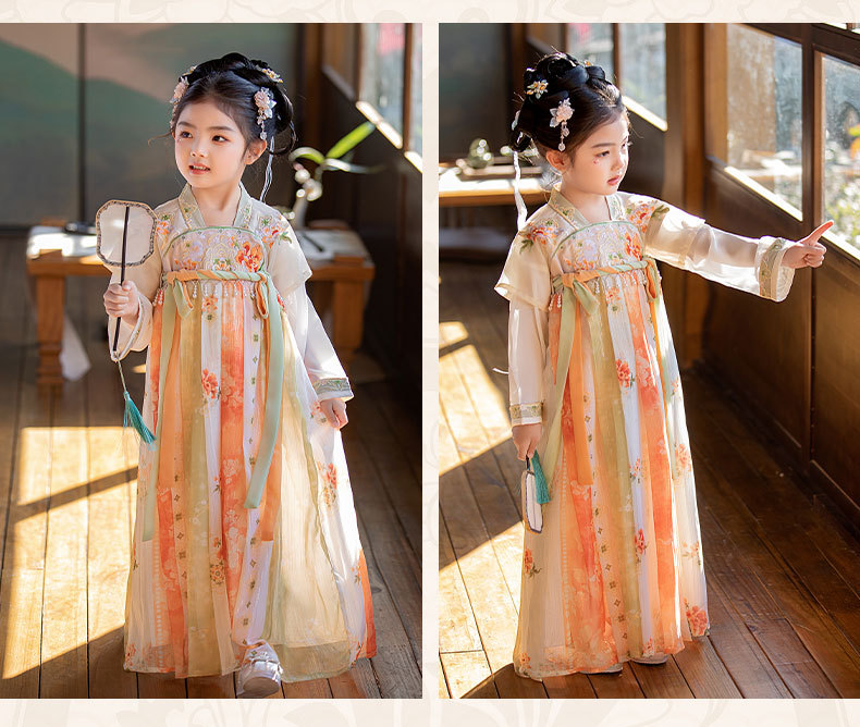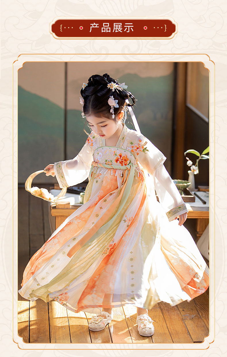 汉服女童2024春秋新款唐装襦裙女孩超仙公主幼儿园演出连衣裙