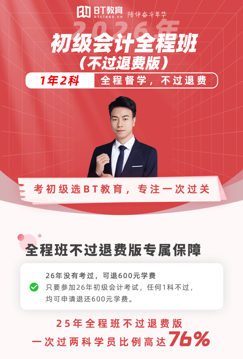 【不过退费版】2026年初级会计全程班(一年2科)