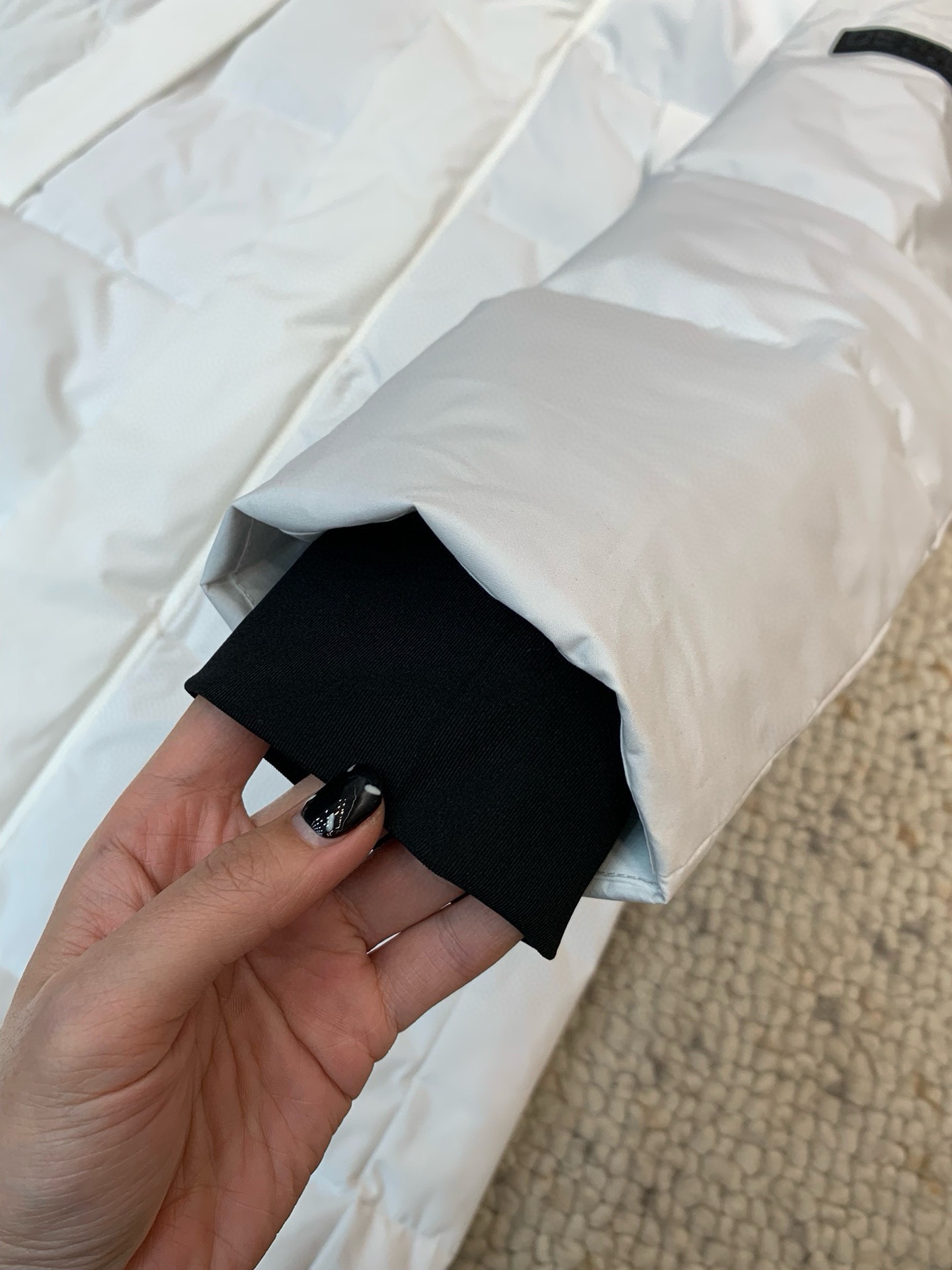 ➡️填绒:填绒是90%鹅绒的,都是大绒朵的,蓬松度很高,非常抗寒的一件羽绒服,S码充绒量都384g了!特别扎实的工艺,而且大身都是先绗线后充绒工艺,饱满度绝绝子。