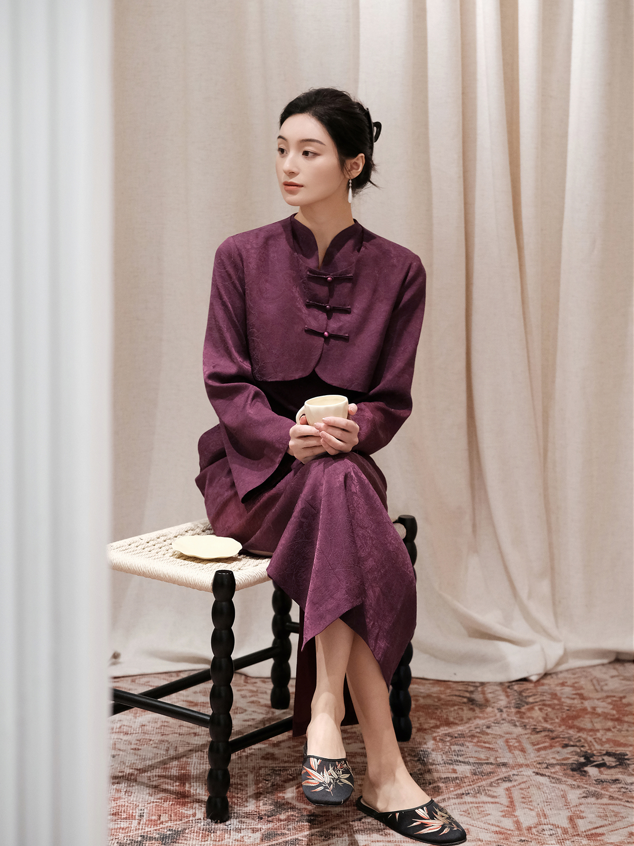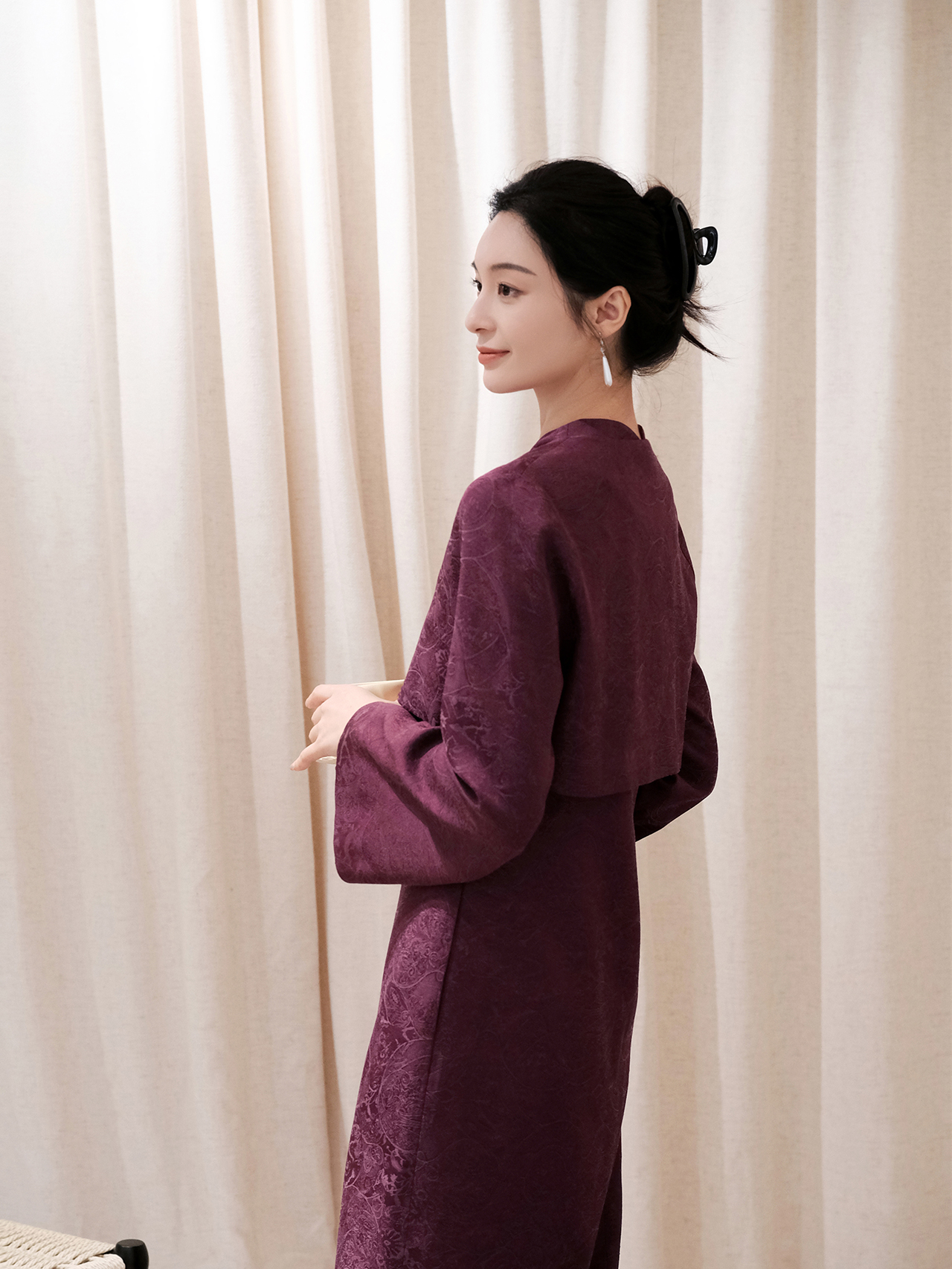 盛唐婧 | 丝毛罗马纹旗袍两件套