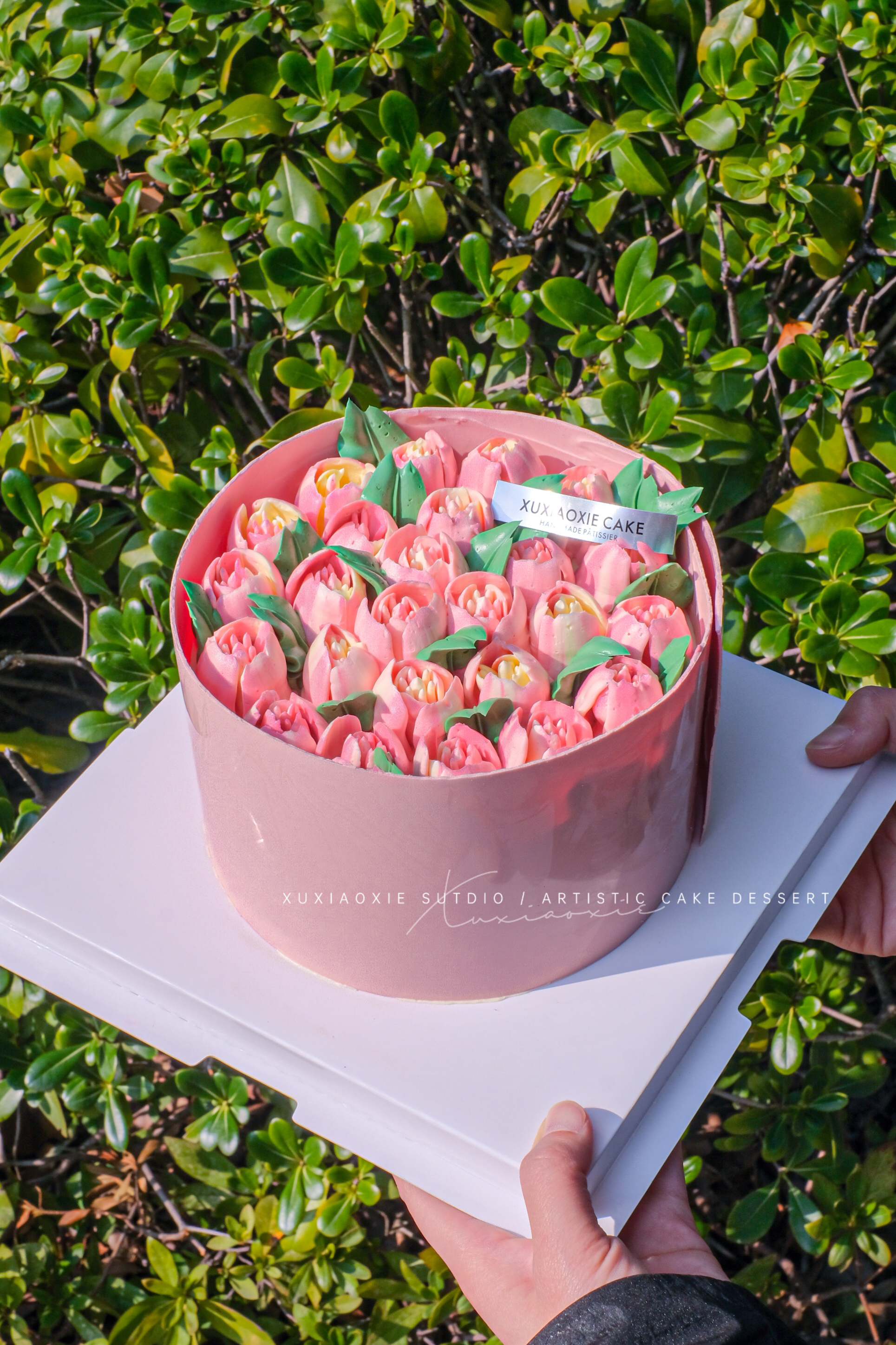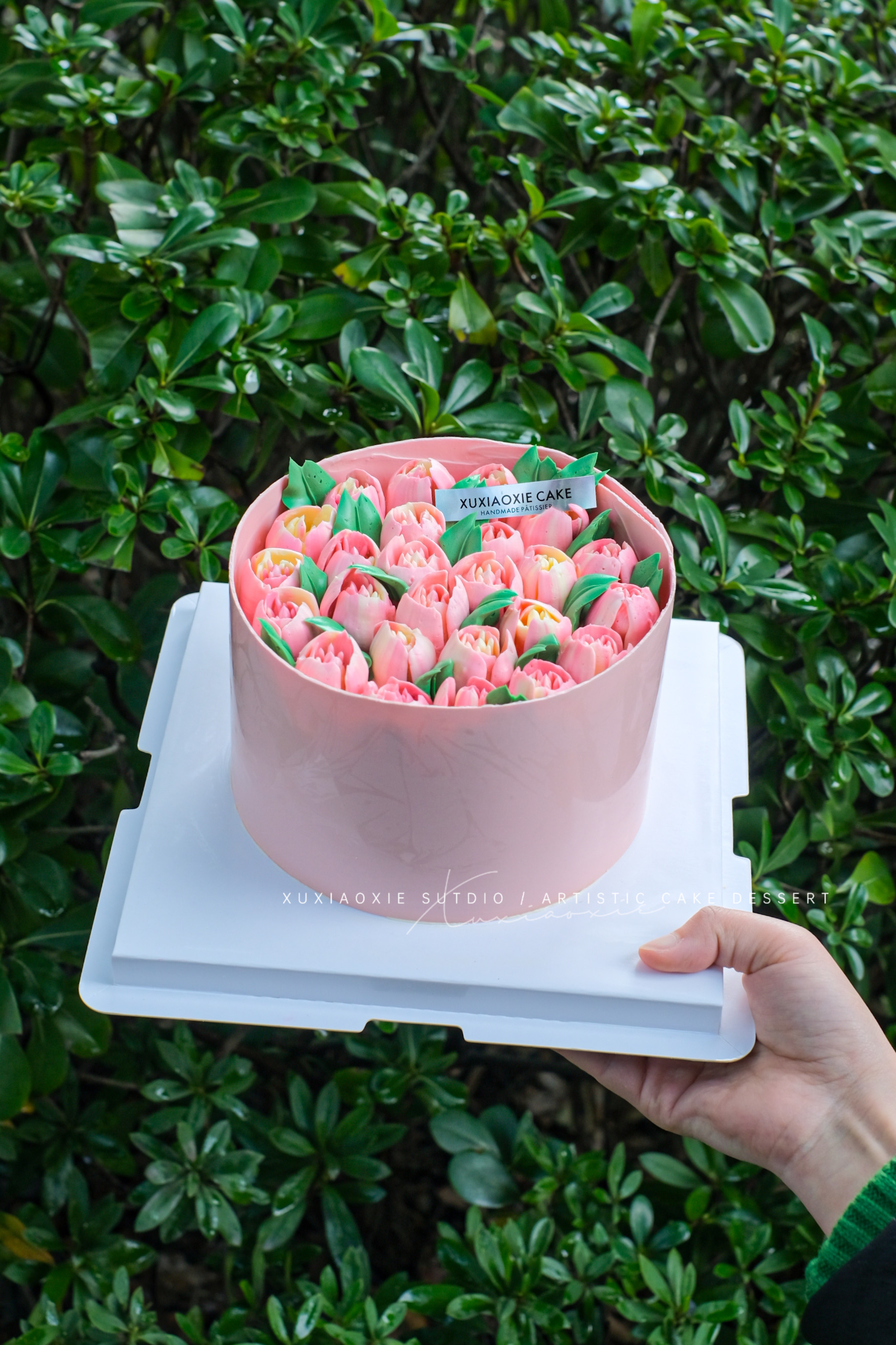 2023郁金香花盒「奶油霜花朵」调温巧克力围边 6寸3层胚2层夹心