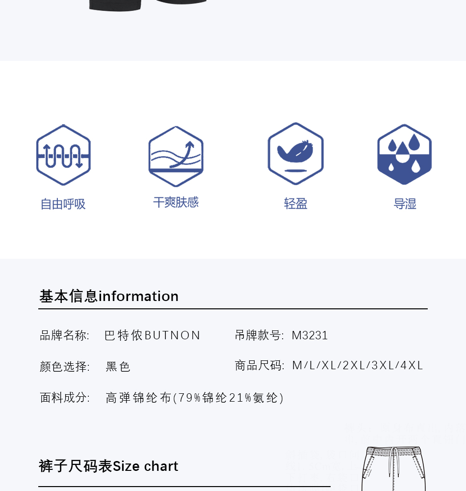 3231巴特侬(butnon)运动裤男士春夏休闲裤子梭织跑步长裤