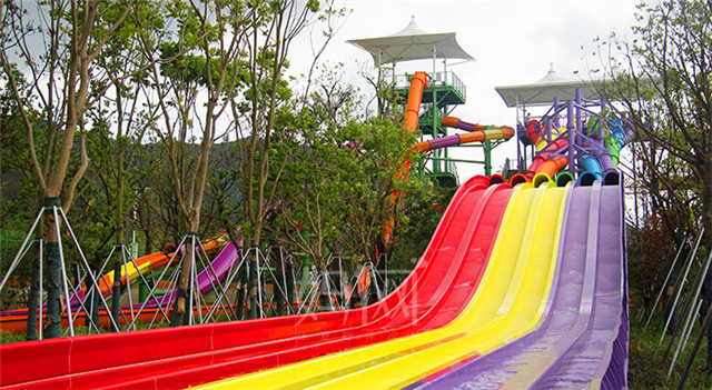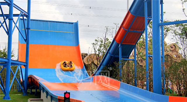 极速丛林为高空高速滑道,以多人组合形式滑行,借助滑具从高空塔台处进入滑道,通过滑道内水流的作用,滑具上下波动、旋转,最后经过一段俯冲至滑道水池内并溅起大量水花;在高度落差给你带来刺激的同时,溅起的水花给您带无尽的欢乐,伴随着欢笑声让您体验极速下滑带来的刺激感受。