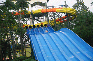 冲天大回旋为高空高速滑道,以多人组合形式滑行,借助滑具从高空塔台处进入滑道,通过滑道内水流的作用,滑具来回摆动或旋转,最后经过一段俯冲至滑道最低点,再由最低点升至高处,巨大的落差让您体验极速下滑带来的刺激感受。