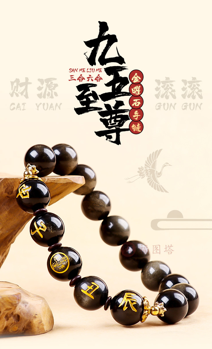 【十二生肖三合六合金曜石手链】