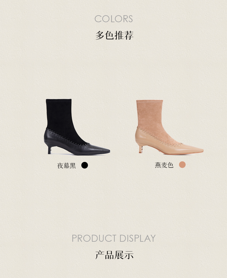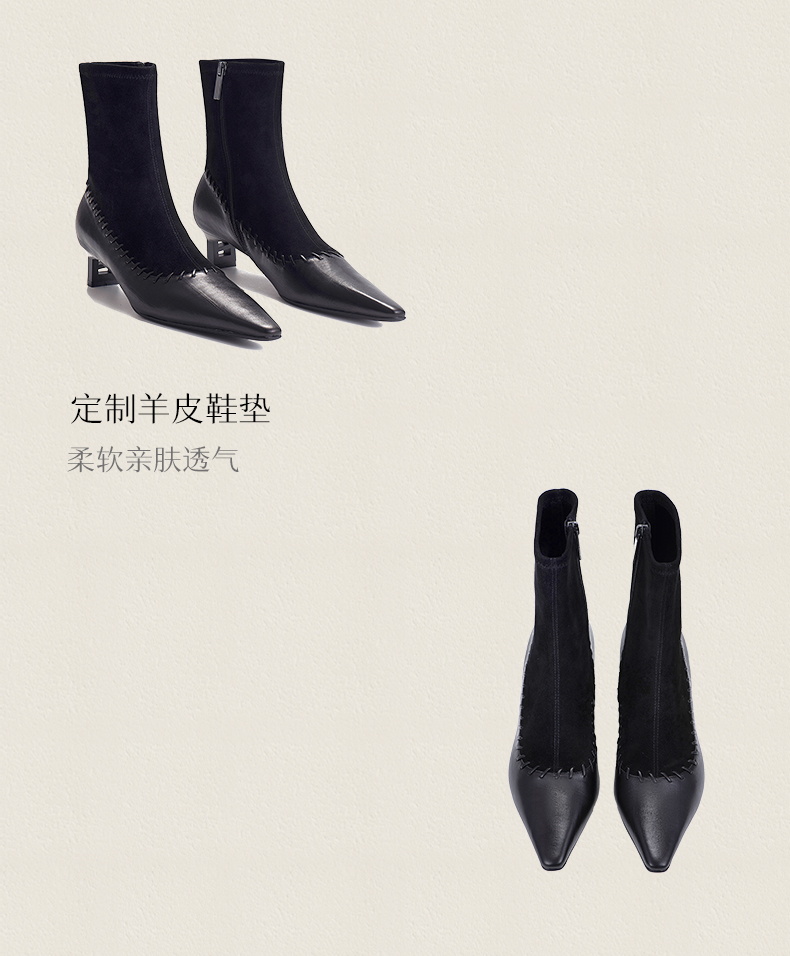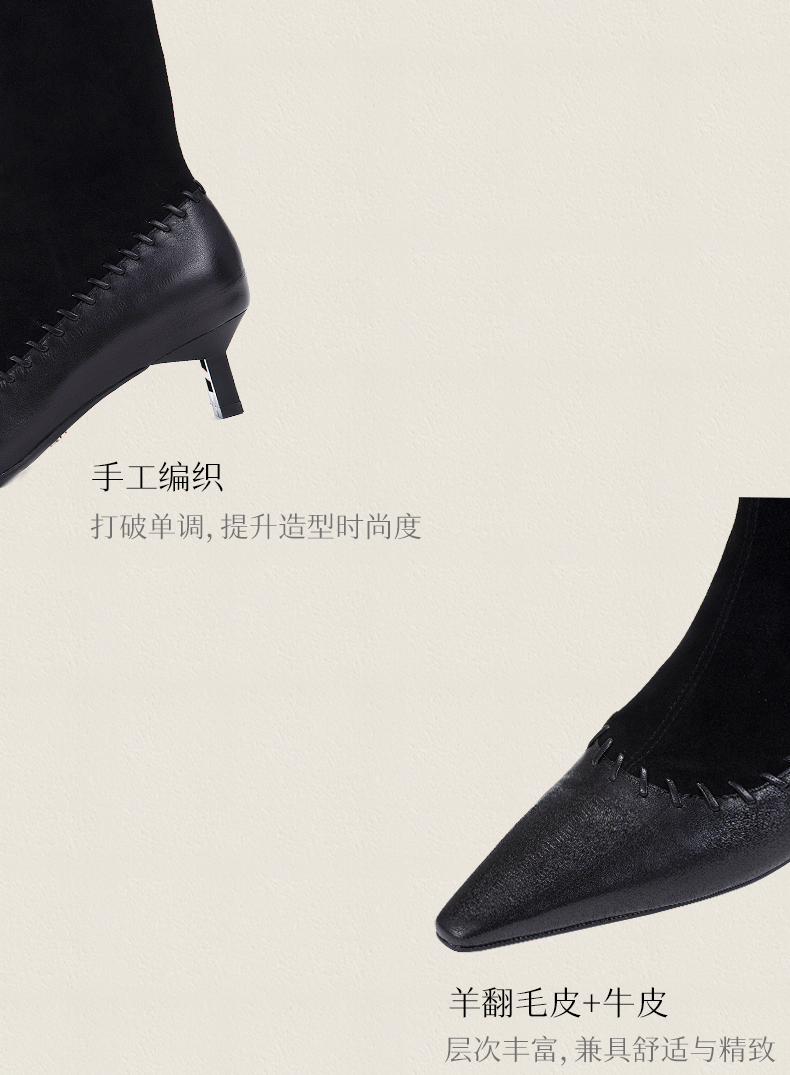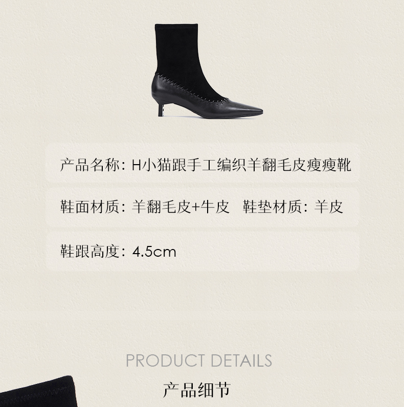 heelz设计师手工鞋履 |H 小猫跟手工编织羊翻毛皮瘦瘦靴 4.5公分