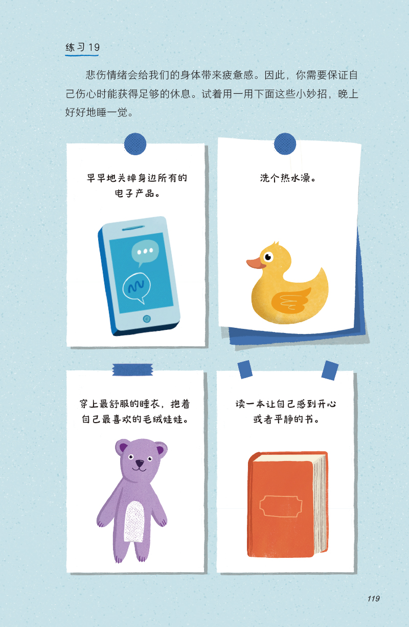 3. 利用专业训练工具管理情绪。本书也是一本情绪管理的工具书,让孩子通过深入的自我思考、具体的文字记录、科学的实操训练,来学习与情绪相处,拥抱正面情绪,更能及时转化负面情绪,完成自助式心理成长。