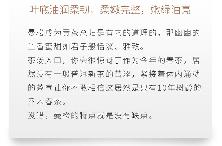 【曼松】2023年曼松森林乔木春茶生饼(100克/400克)年仅一次原料底价