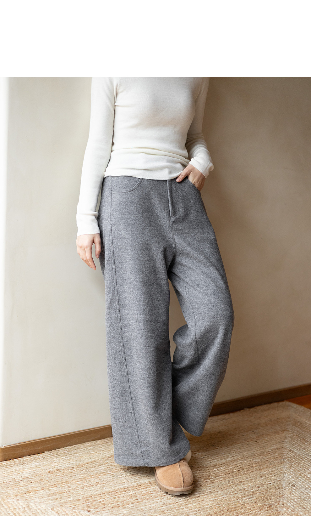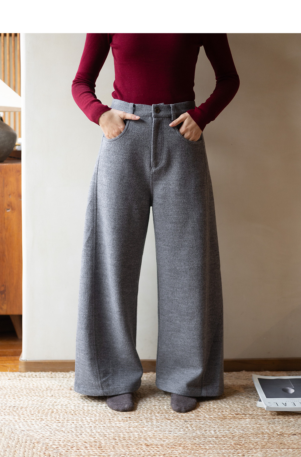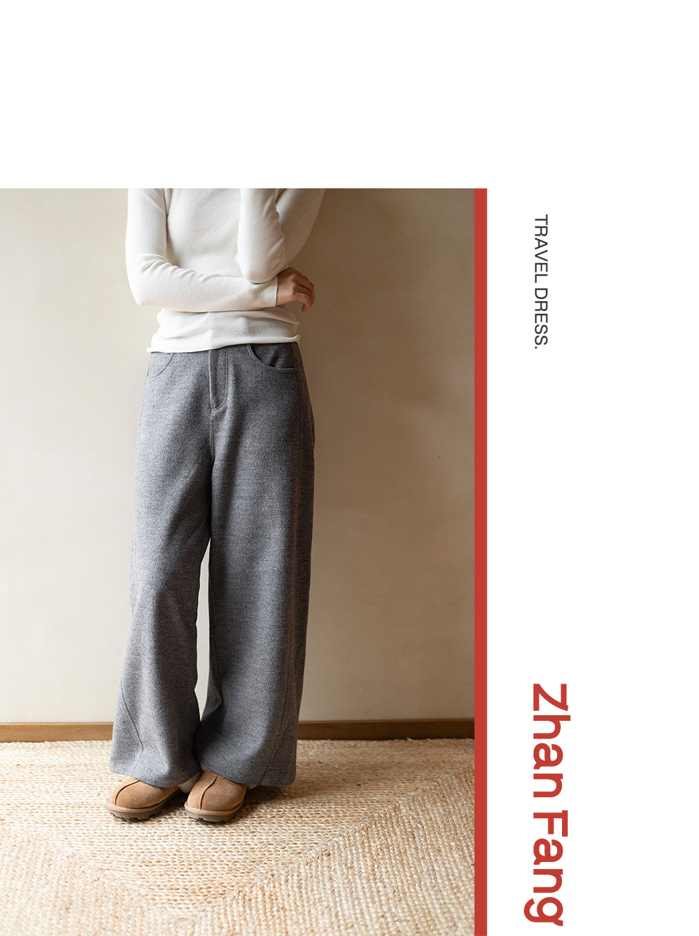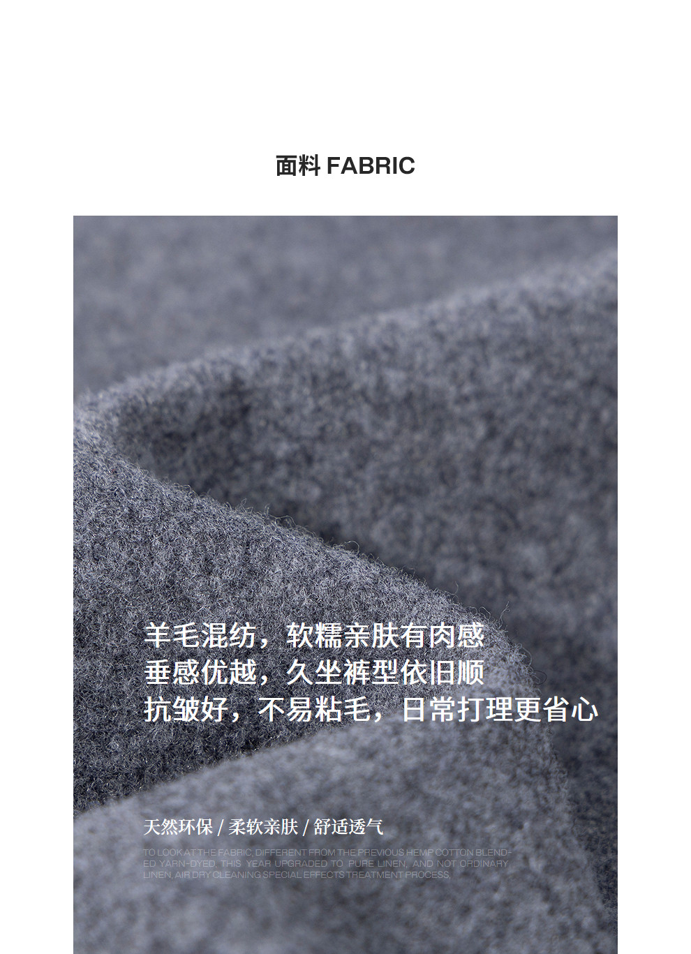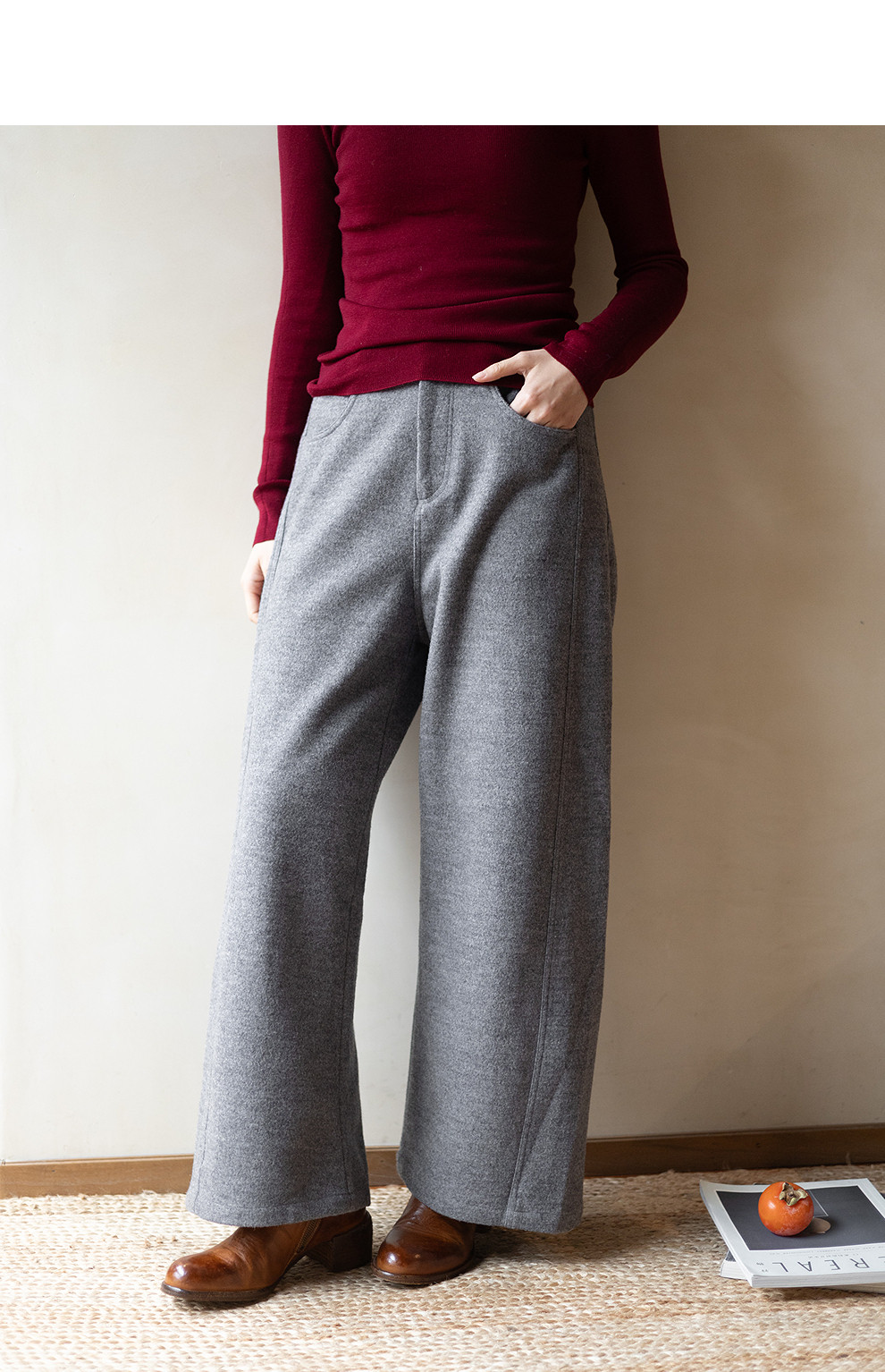 绽放044朵/羊毛混纺花纱毛呢直筒长裤百搭松弛感双面呢休闲裤新款