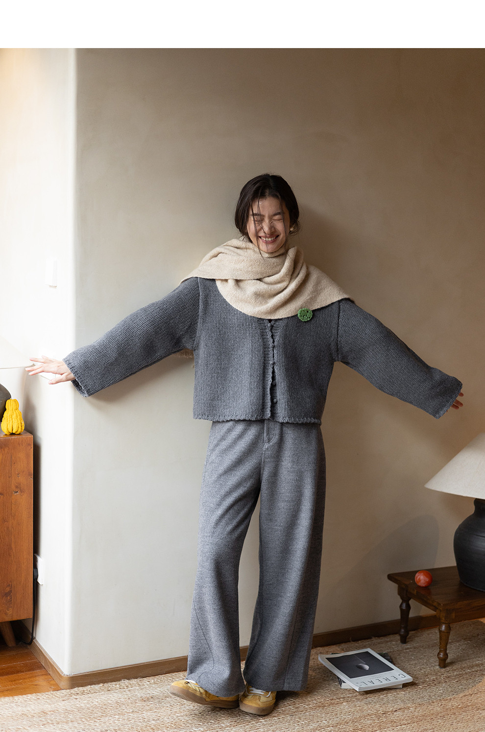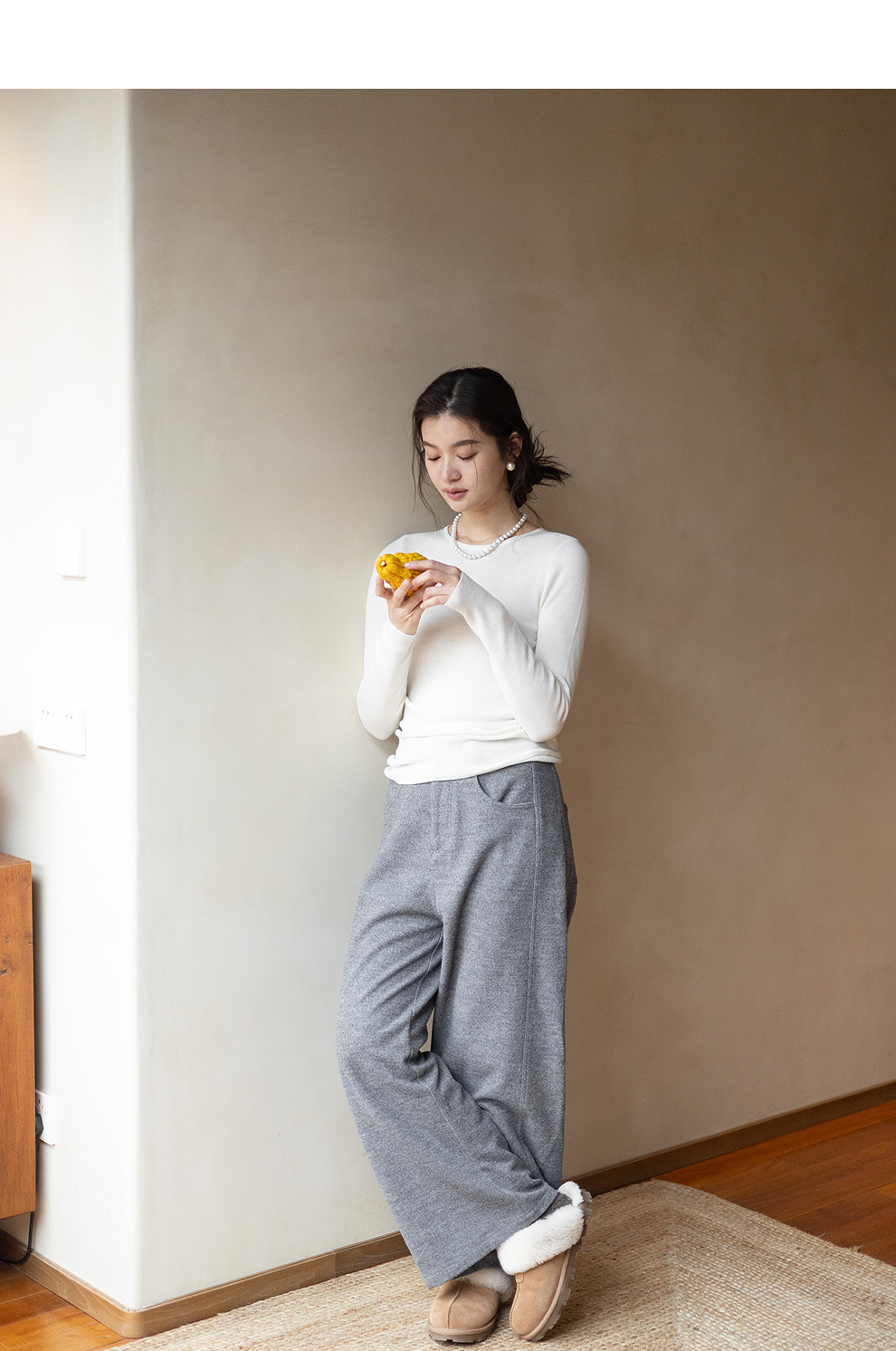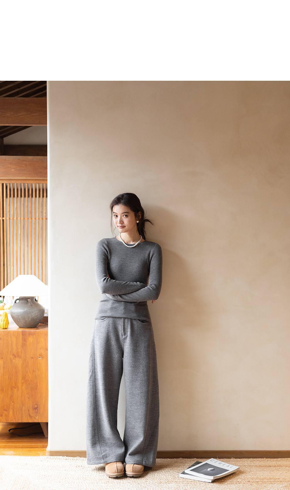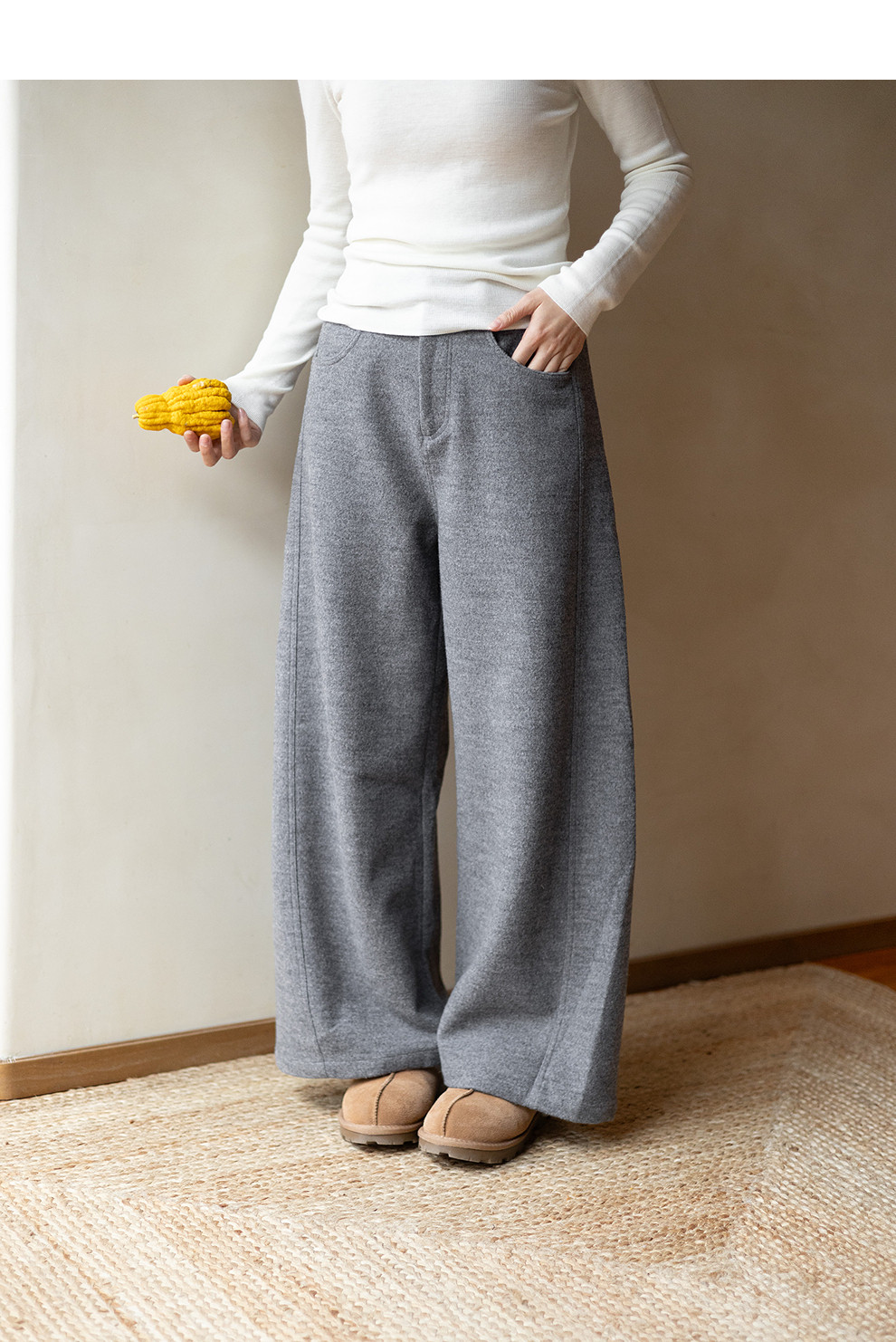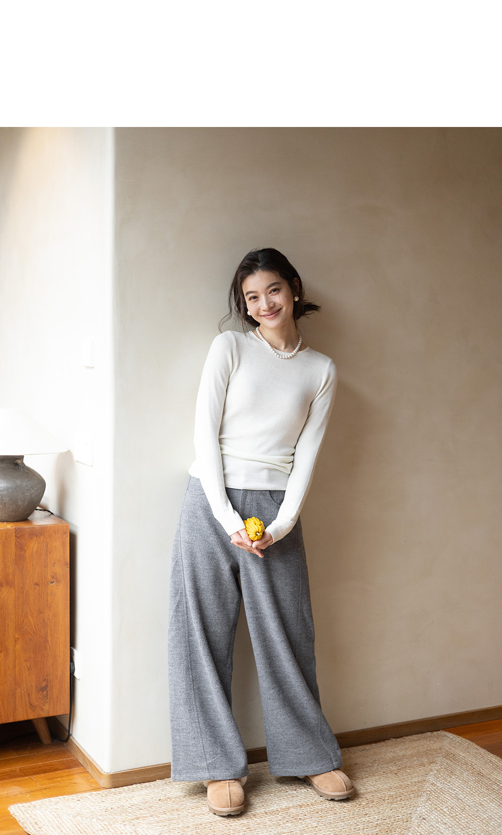 绽放044朵/羊毛混纺花纱毛呢直筒长裤百搭松弛感双面呢休闲裤新款