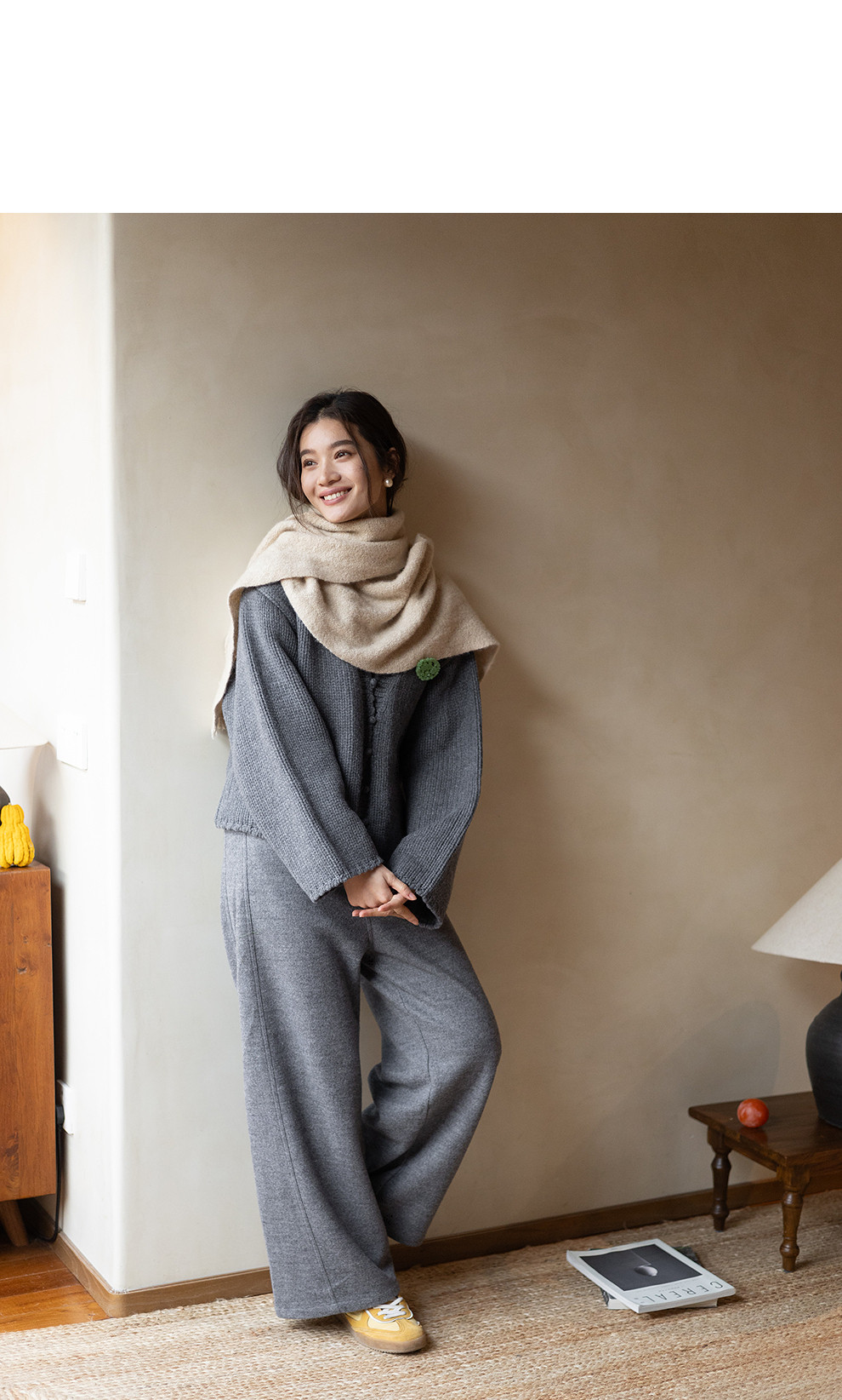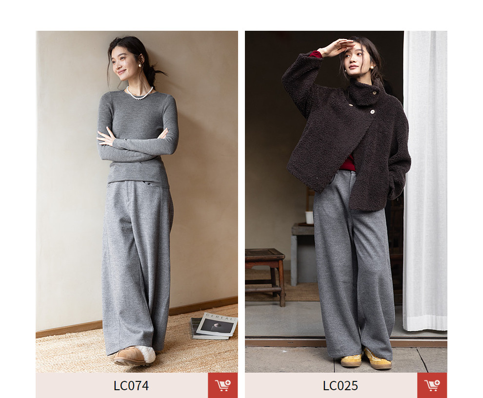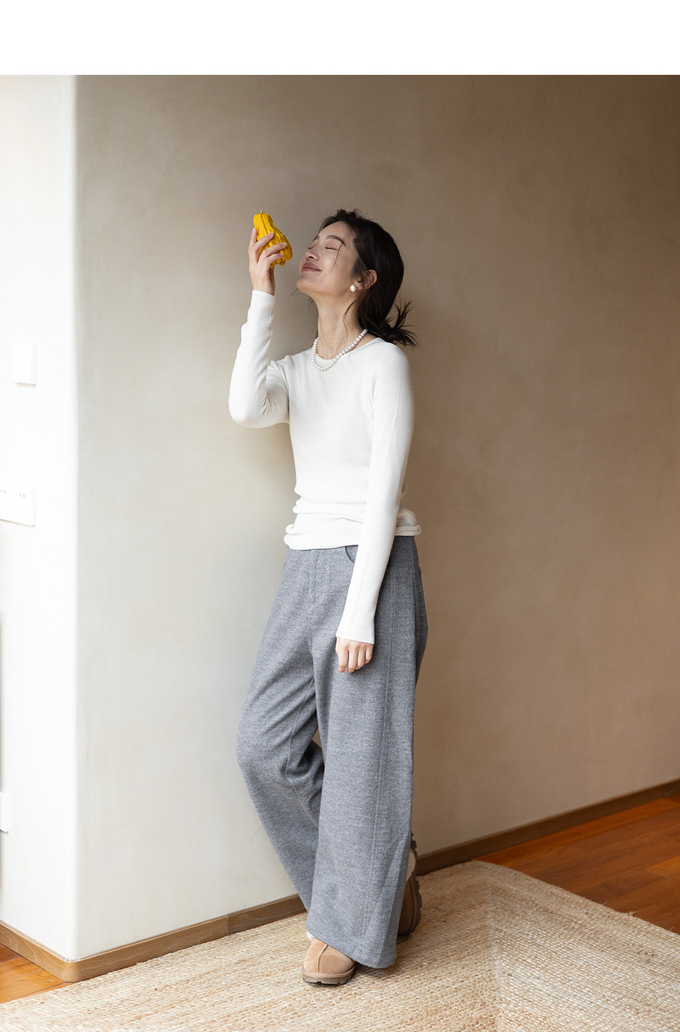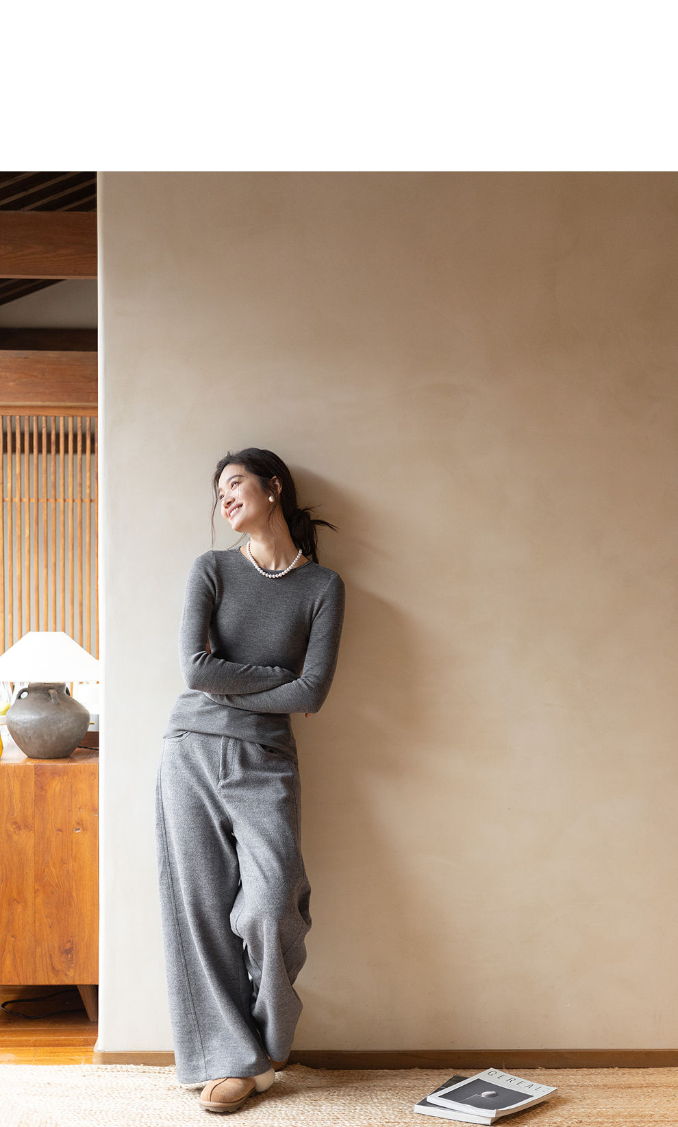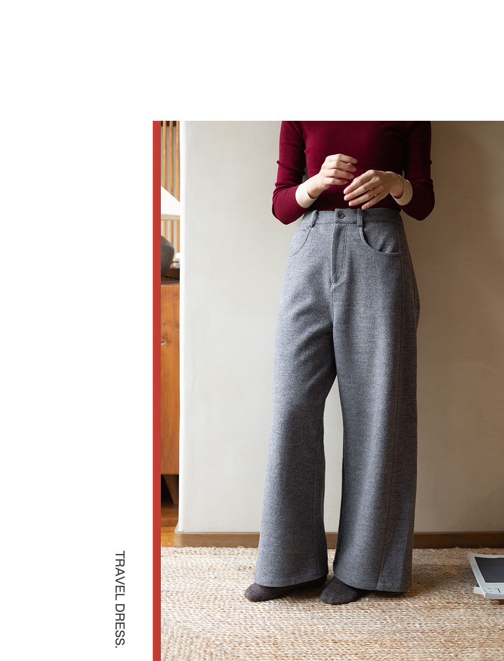 绽放044朵/羊毛混纺花纱毛呢直筒长裤百搭松弛感双面呢休闲裤新款