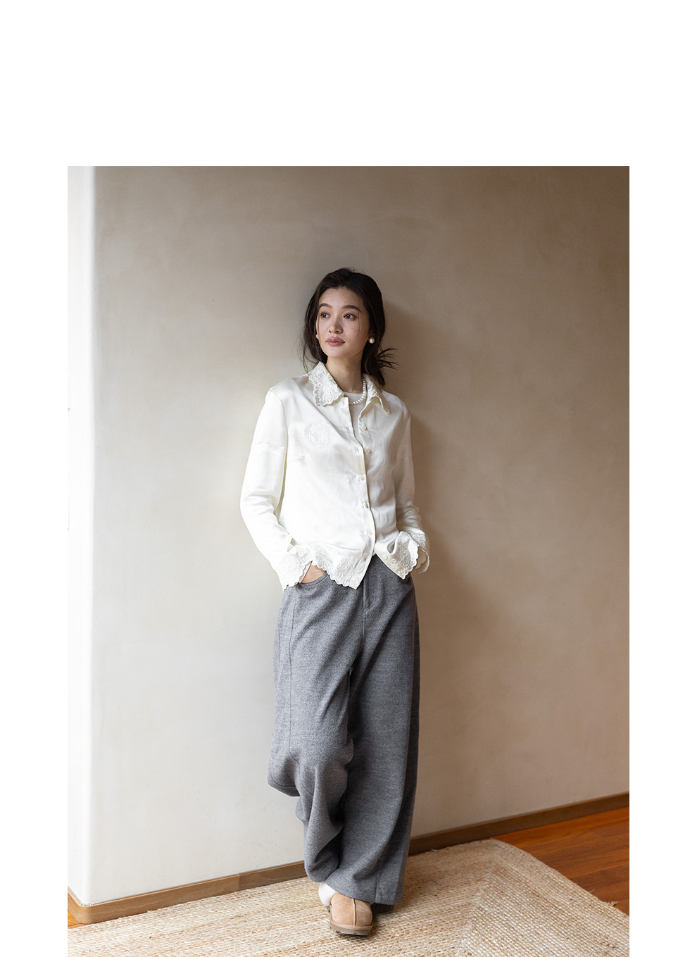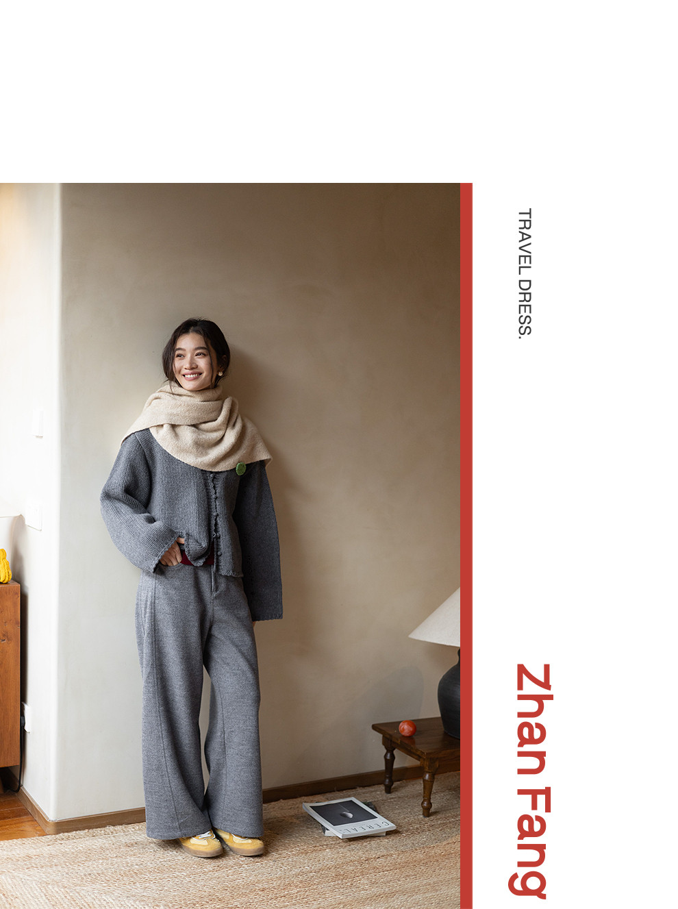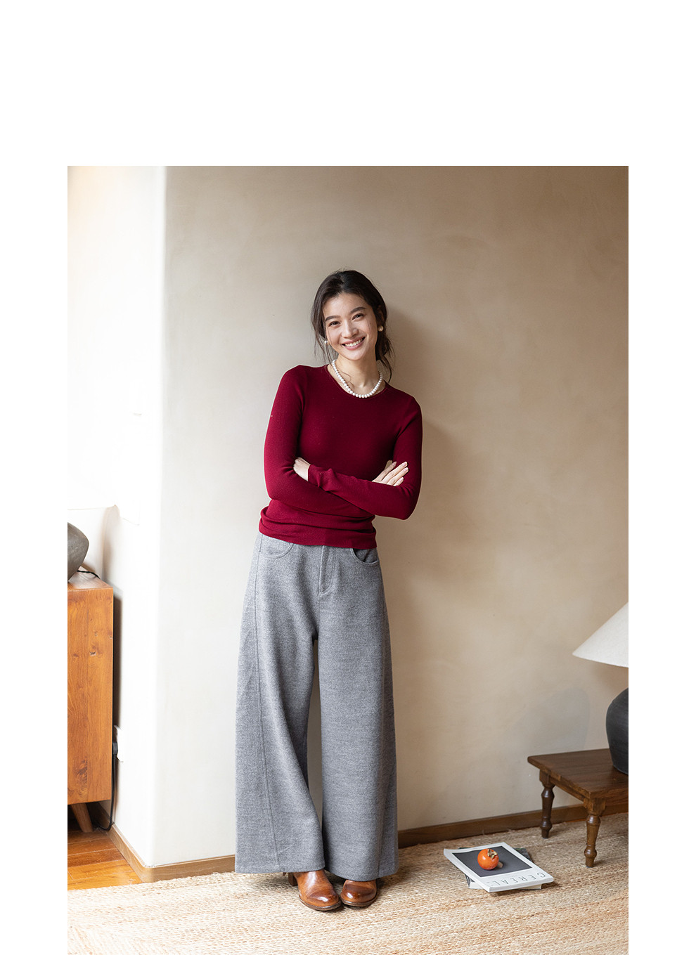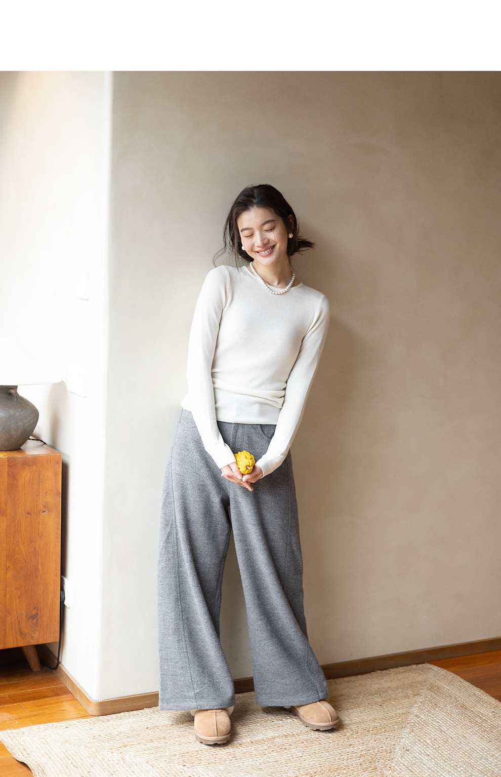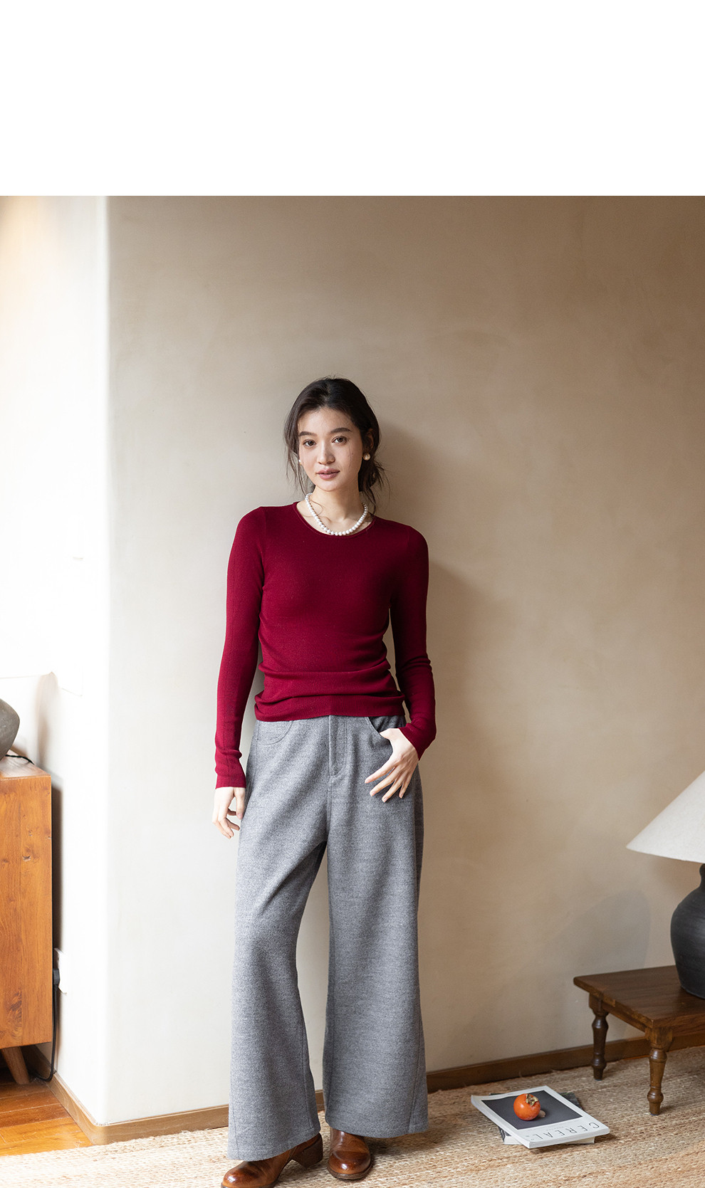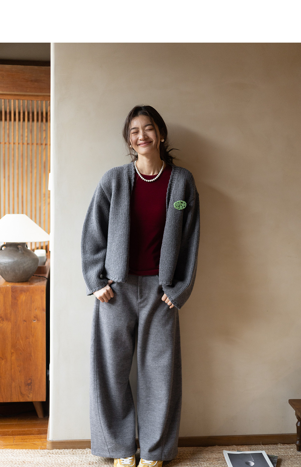 绽放044朵/羊毛混纺花纱毛呢直筒长裤百搭松弛感双面呢休闲裤新款