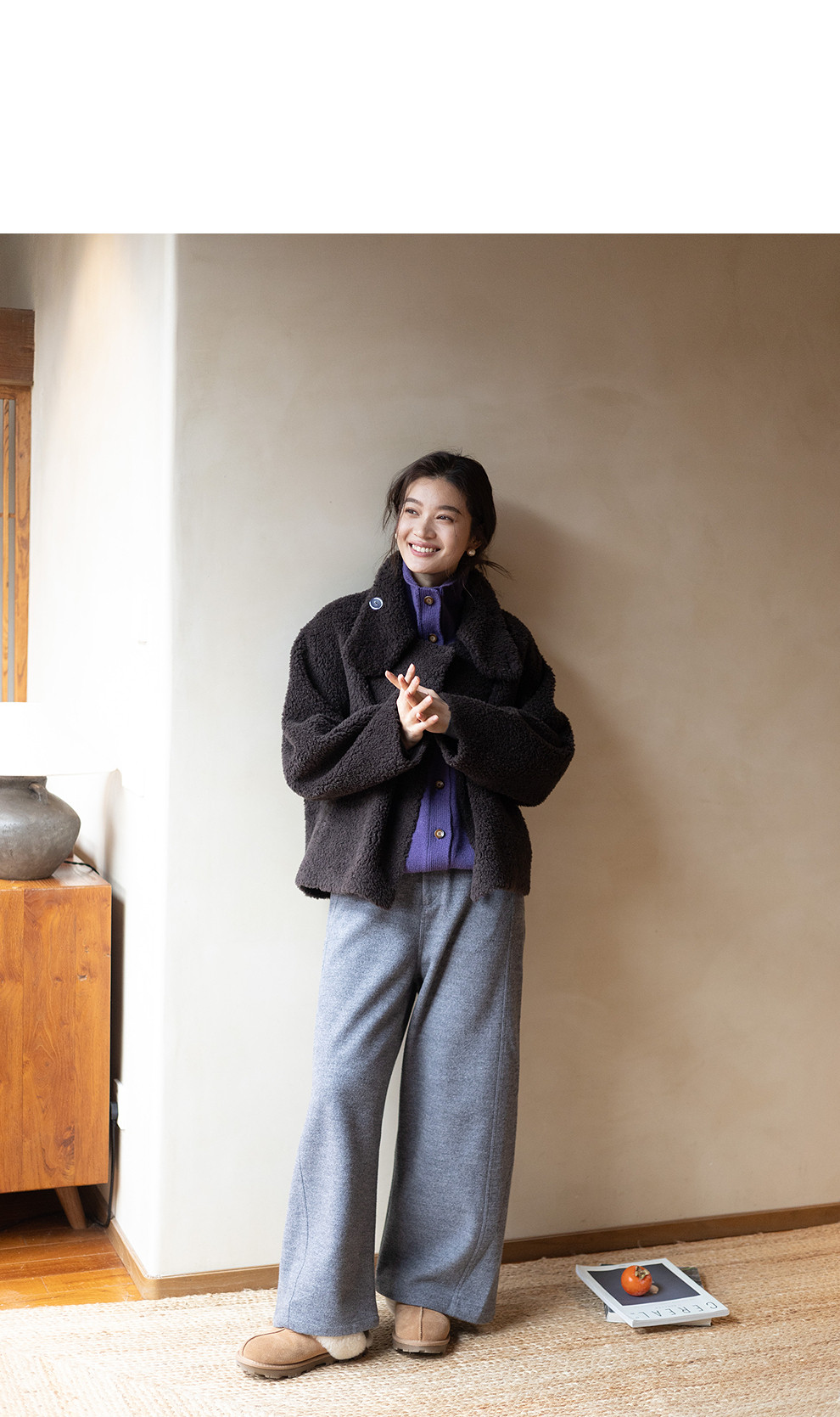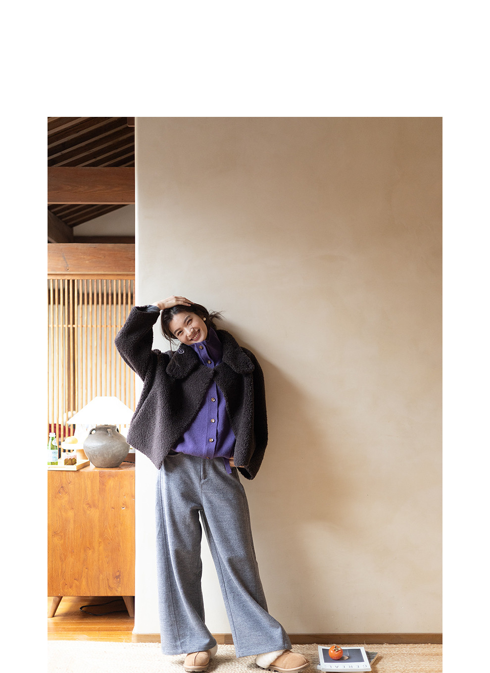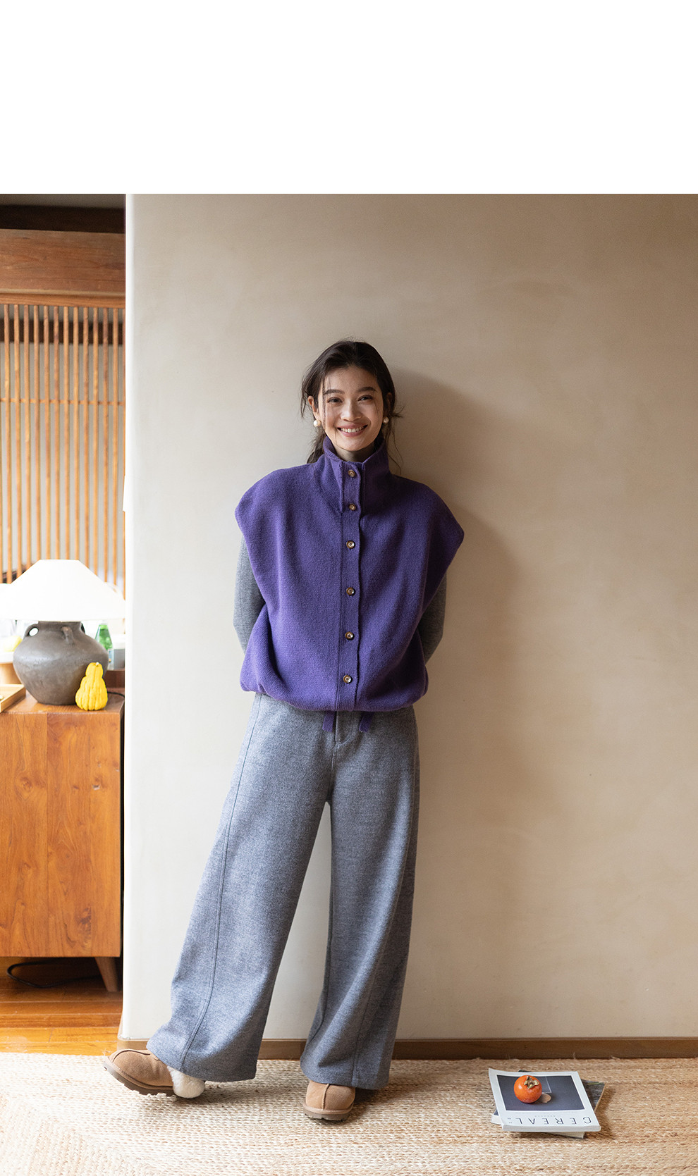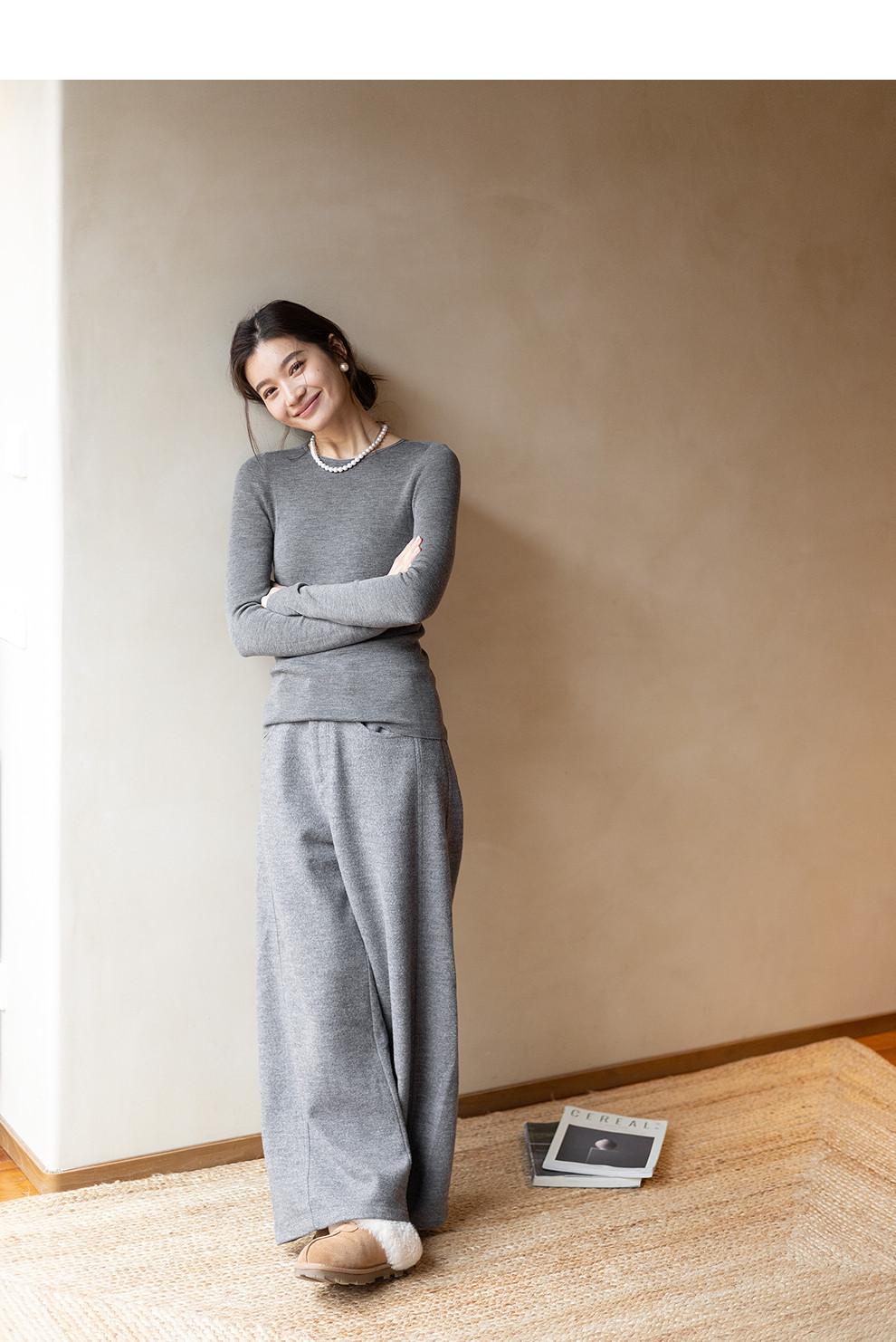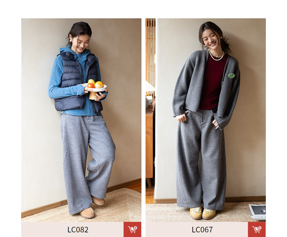 绽放044朵/羊毛混纺花纱毛呢直筒长裤百搭松弛感双面呢休闲裤新款