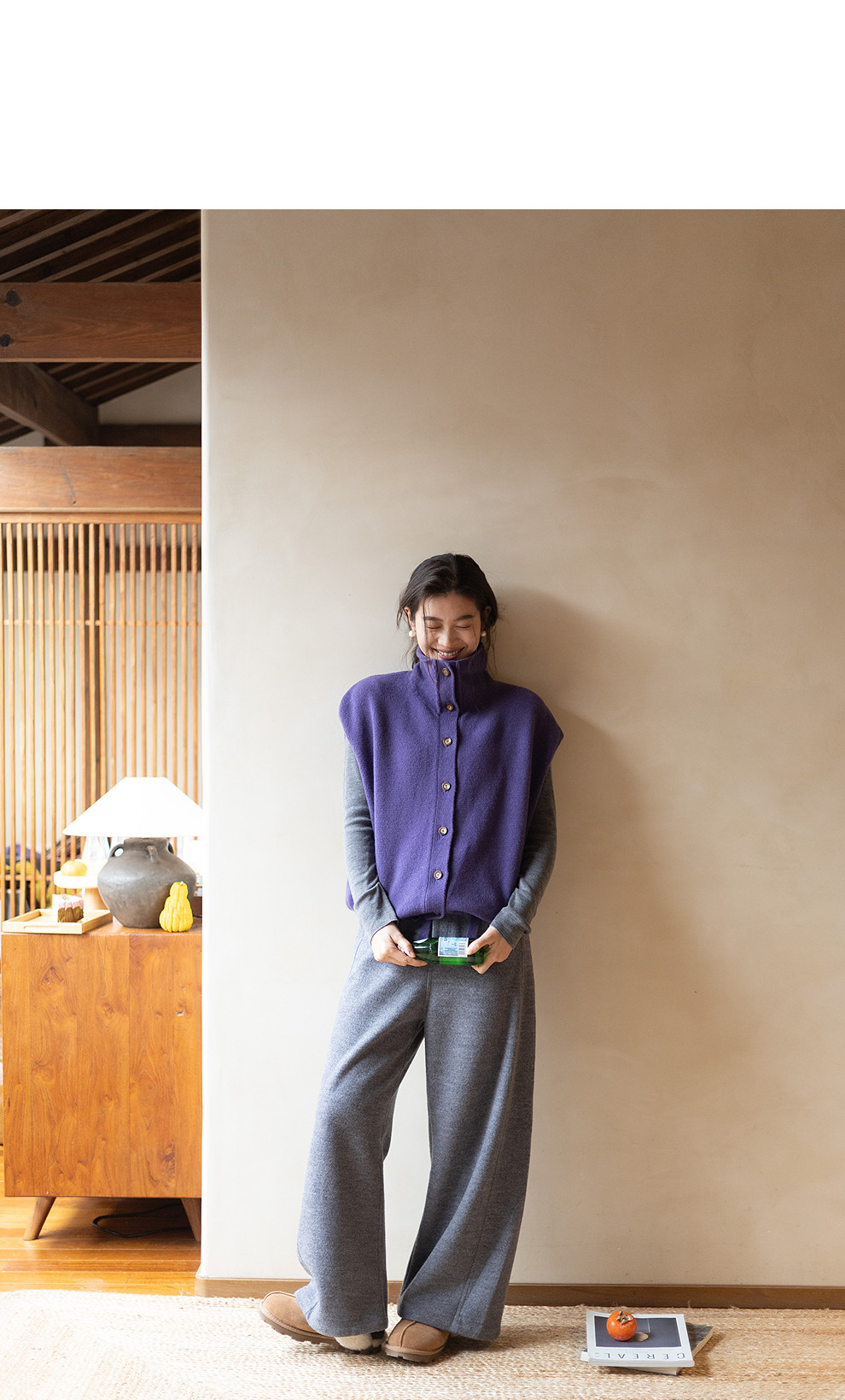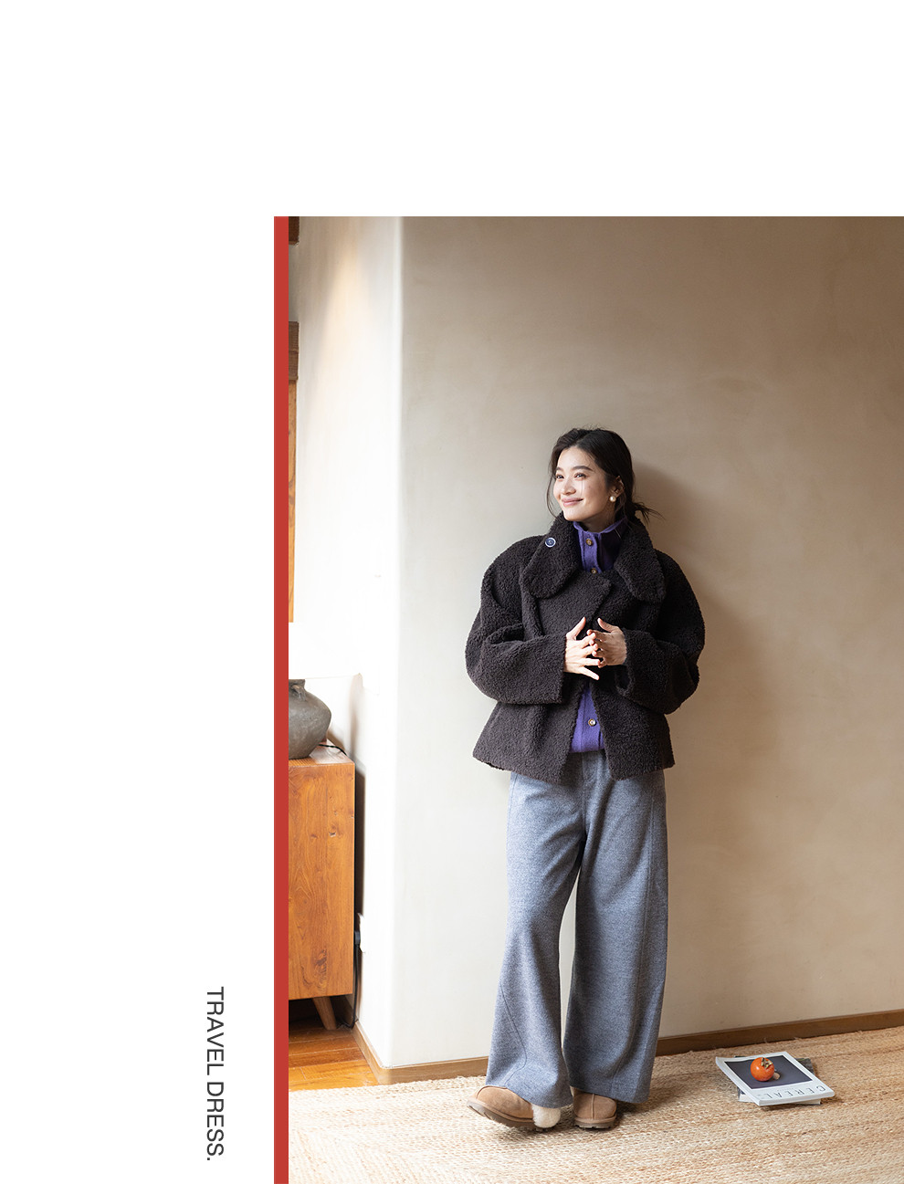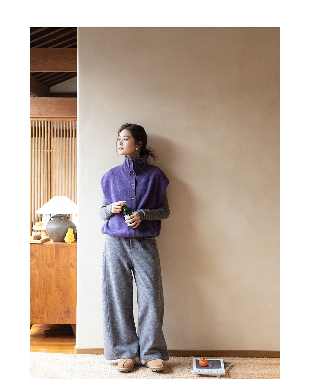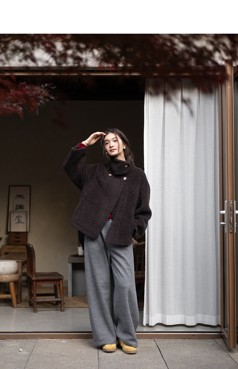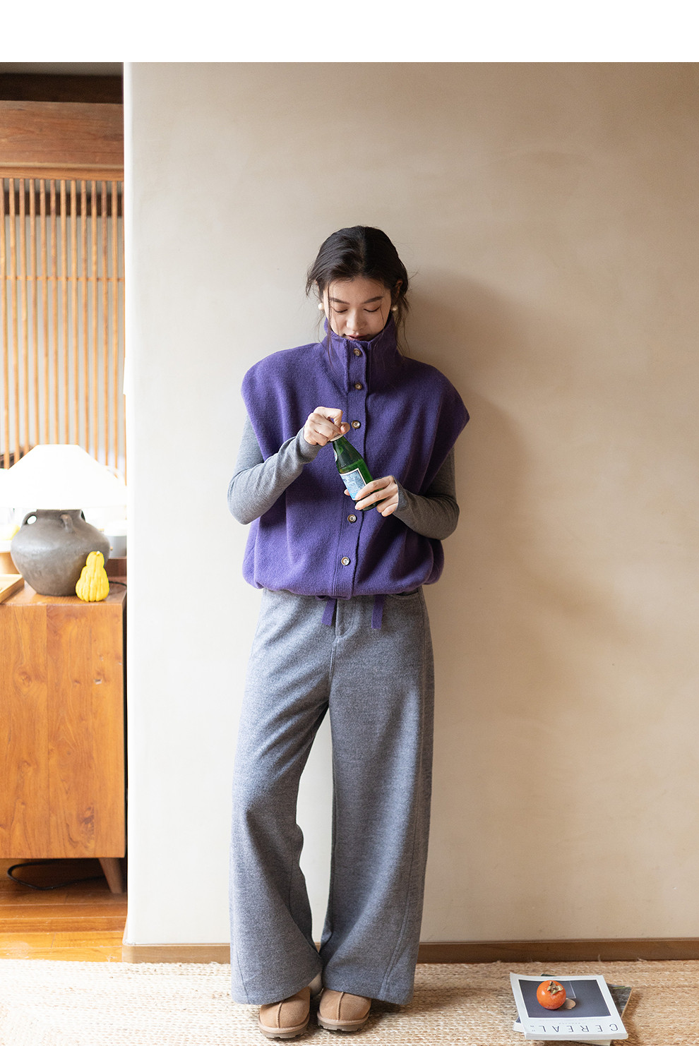 绽放044朵/羊毛混纺花纱毛呢直筒长裤百搭松弛感双面呢休闲裤新款