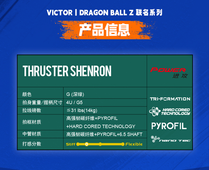 VICTOR威克多龙珠Z联名系列羽毛球拍单拍进攻型神龙球拍TK-SHENRON