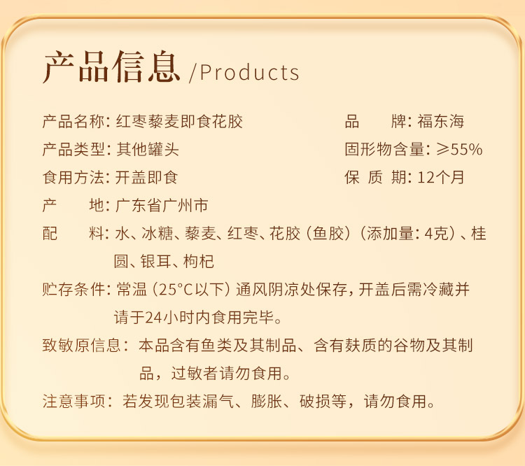 福东海 花娇颜 红枣藜麦即食花胶165克 鱼胶胶原蛋白奶冻送女人滋补代餐