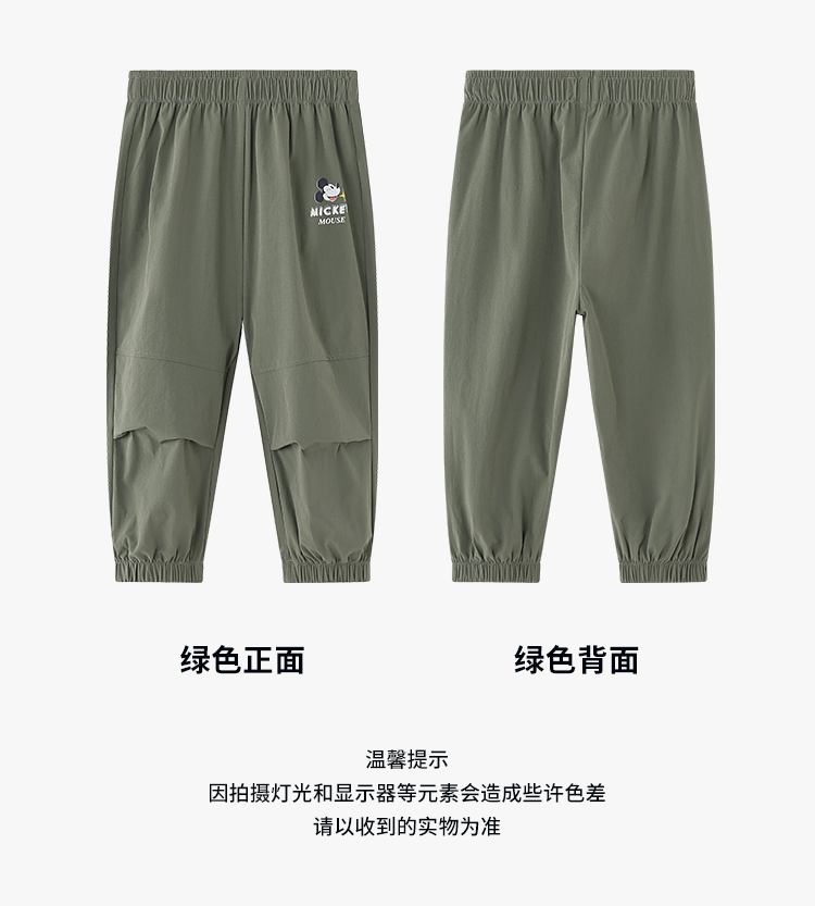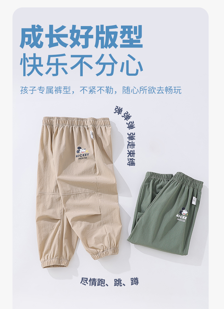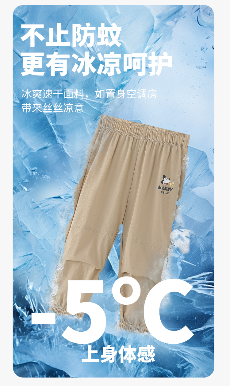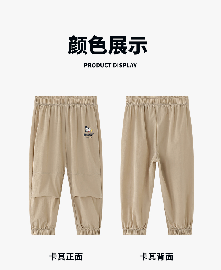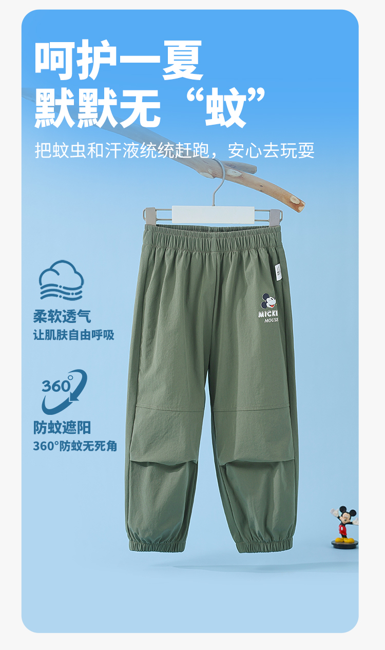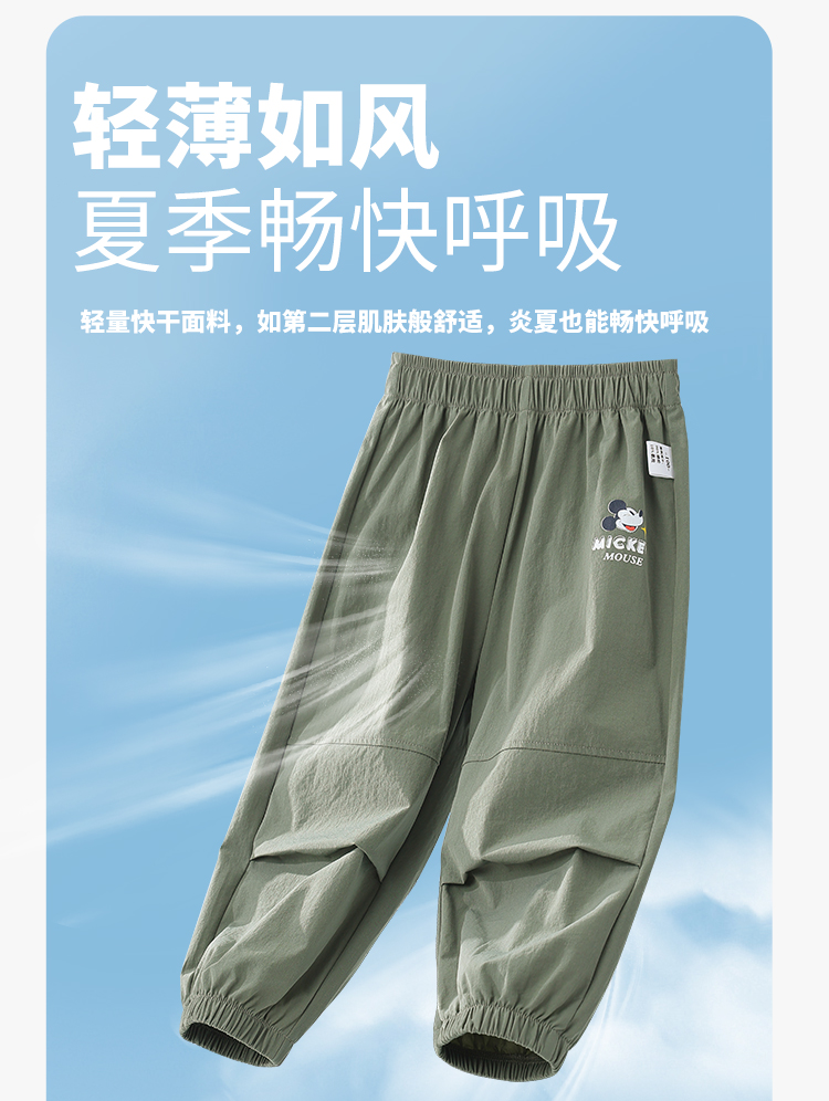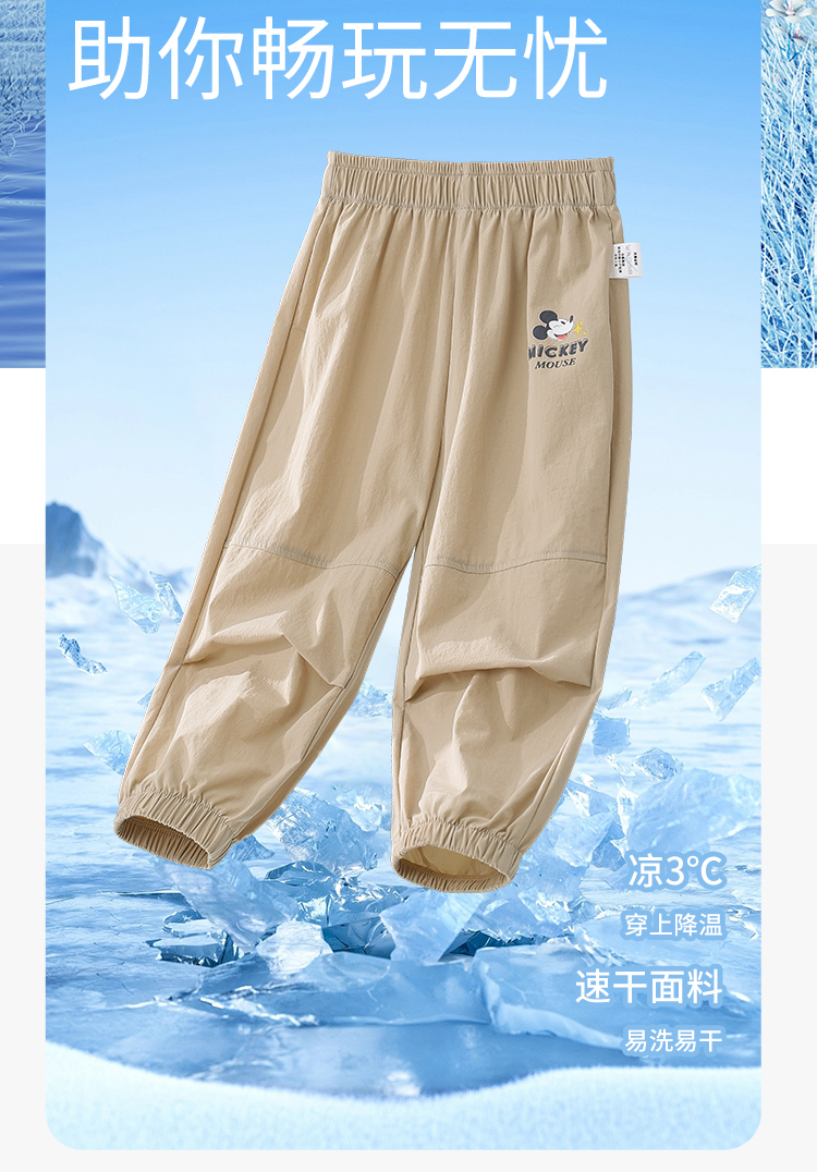 迪士尼2025夏季新款男童冰感长裤中大童运动休闲裤防蚊裤户外伞兵裤ZD2EK016