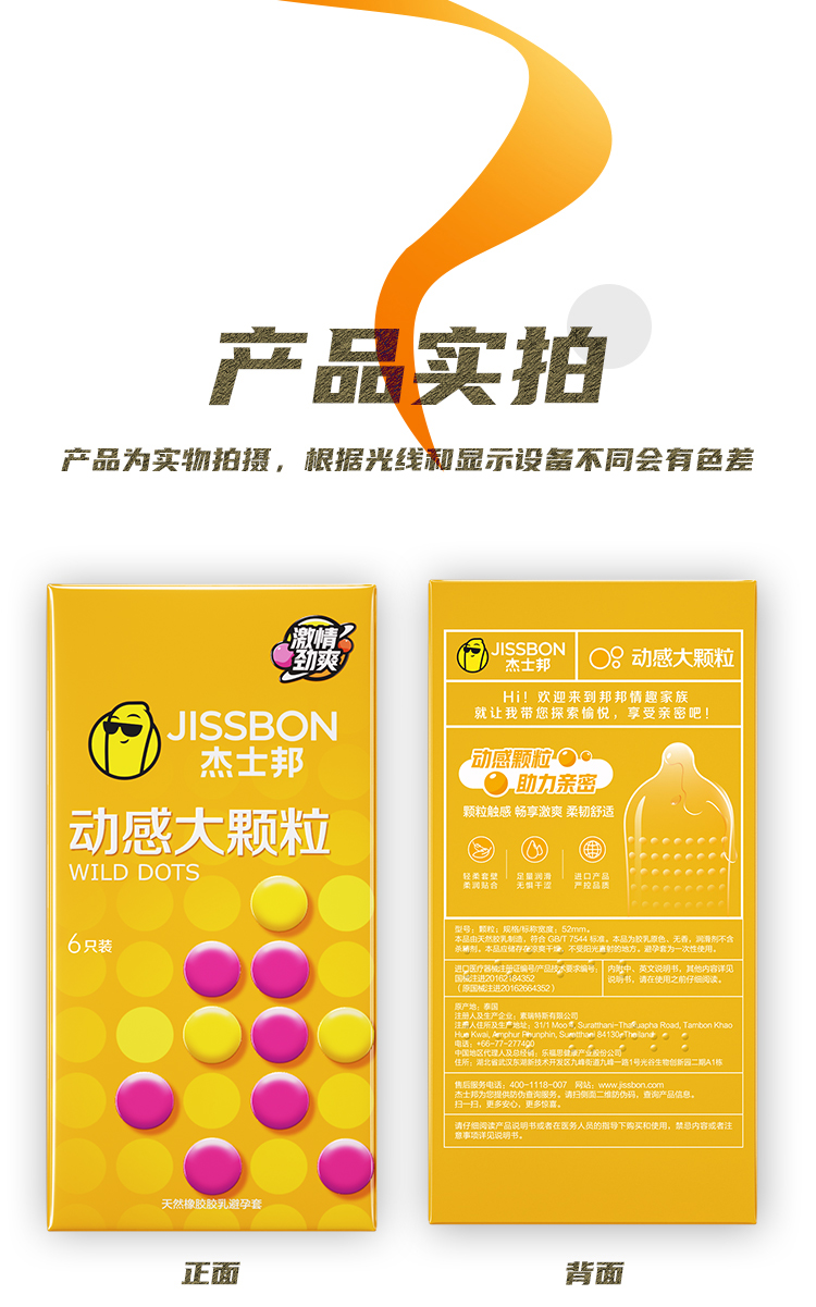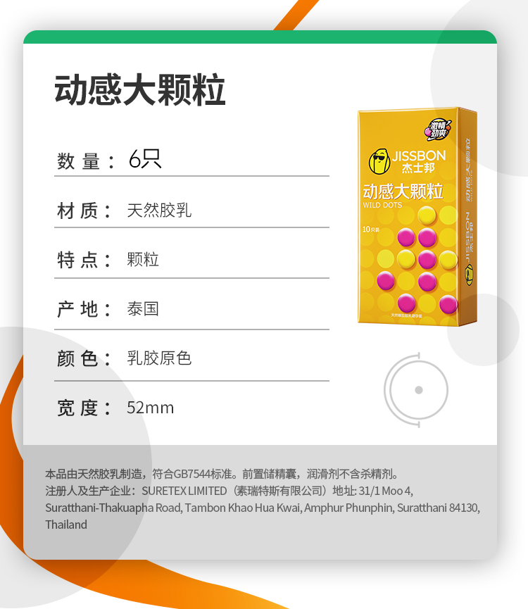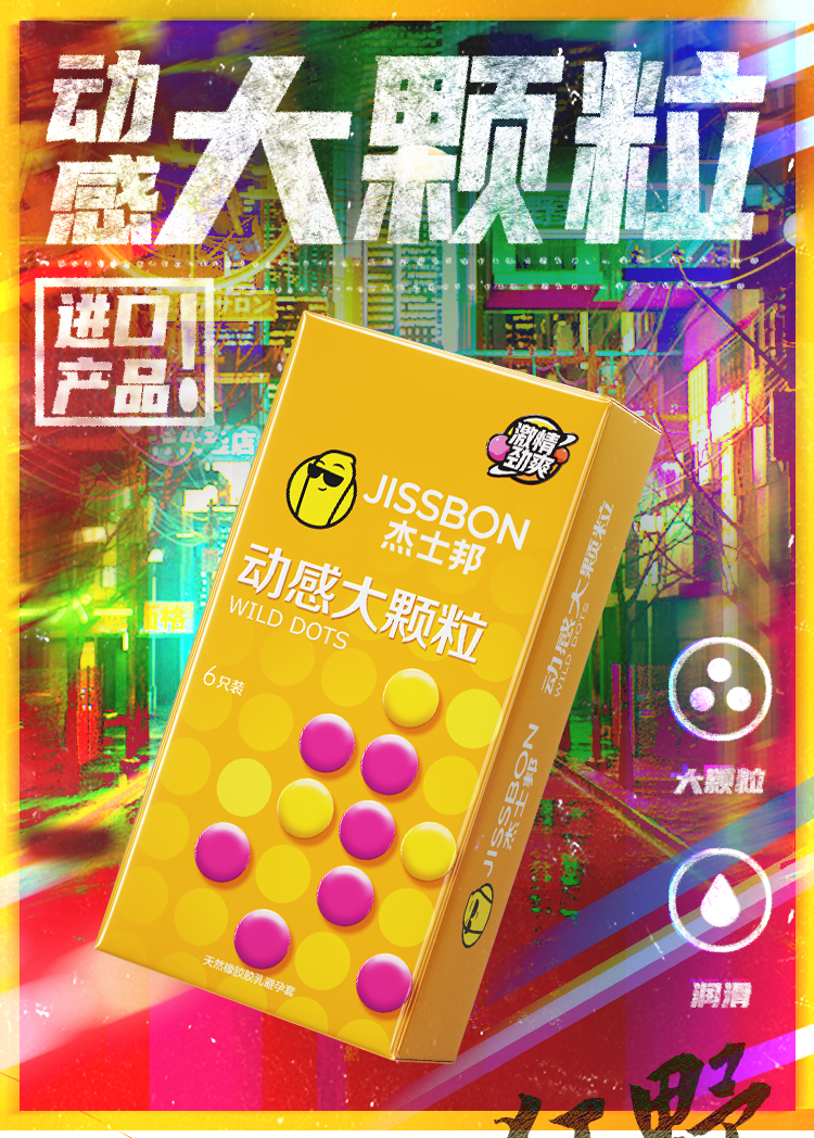 【大颗粒】杰士邦动感大颗粒6只装避孕套 男女计生用品异形套 安全套套正品