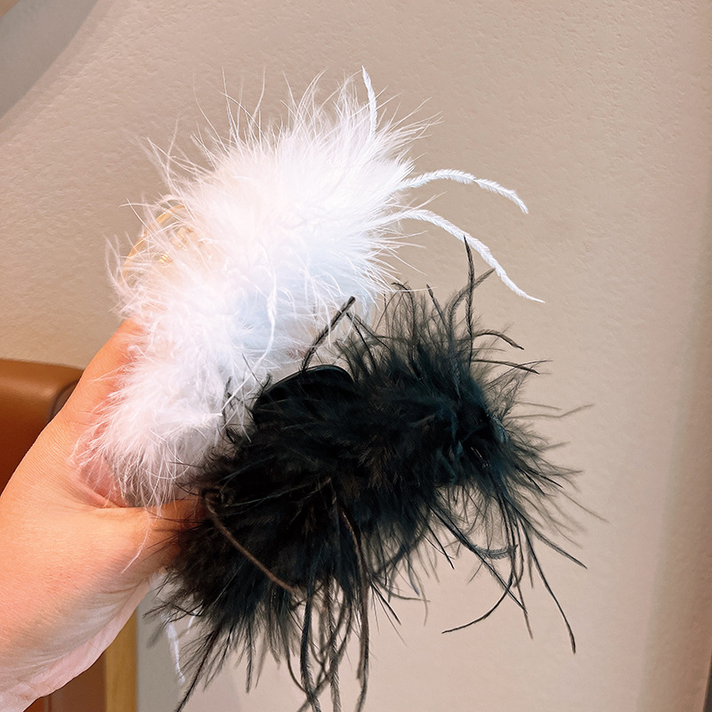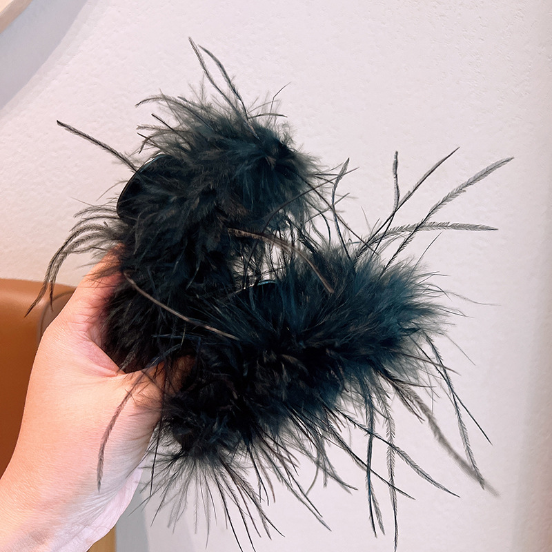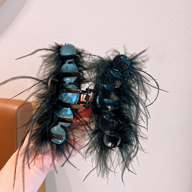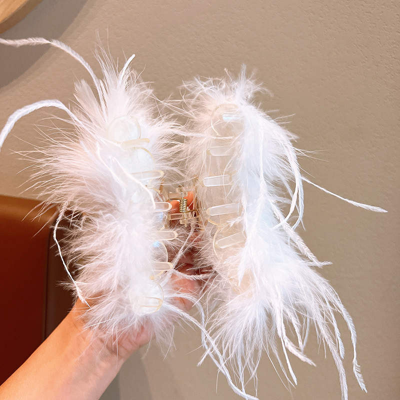 【张予曦同款】鲨鱼夹秋冬款羽毛抓夹高端感鸵鸟毛发夹后脑勺毛毛发抓超仙头饰