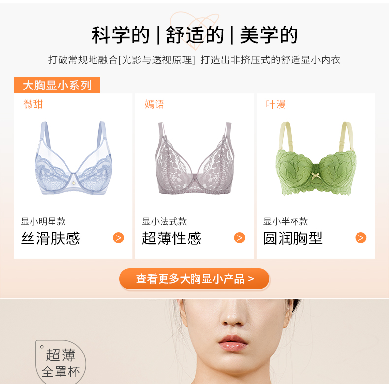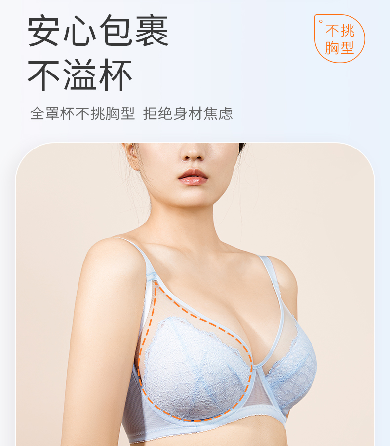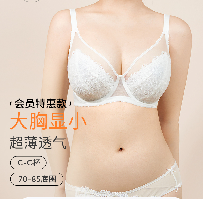 【门店积分兑换】奶糖派大胸显小内衣全罩杯超薄款性感蕾丝显瘦文胸满天星会员款