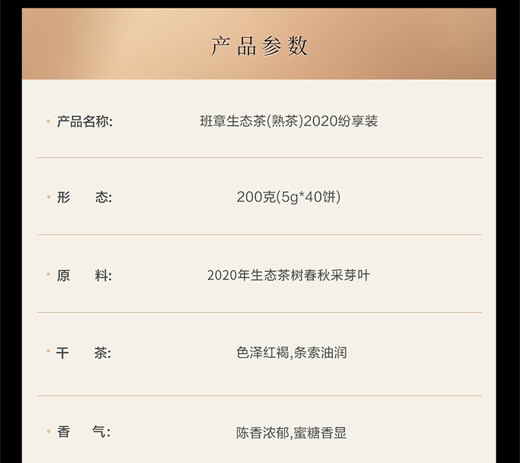 年迹 班章生态茶(普洱熟茶紧压茶)纷享装-2020年 (5g*40饼)【现货】