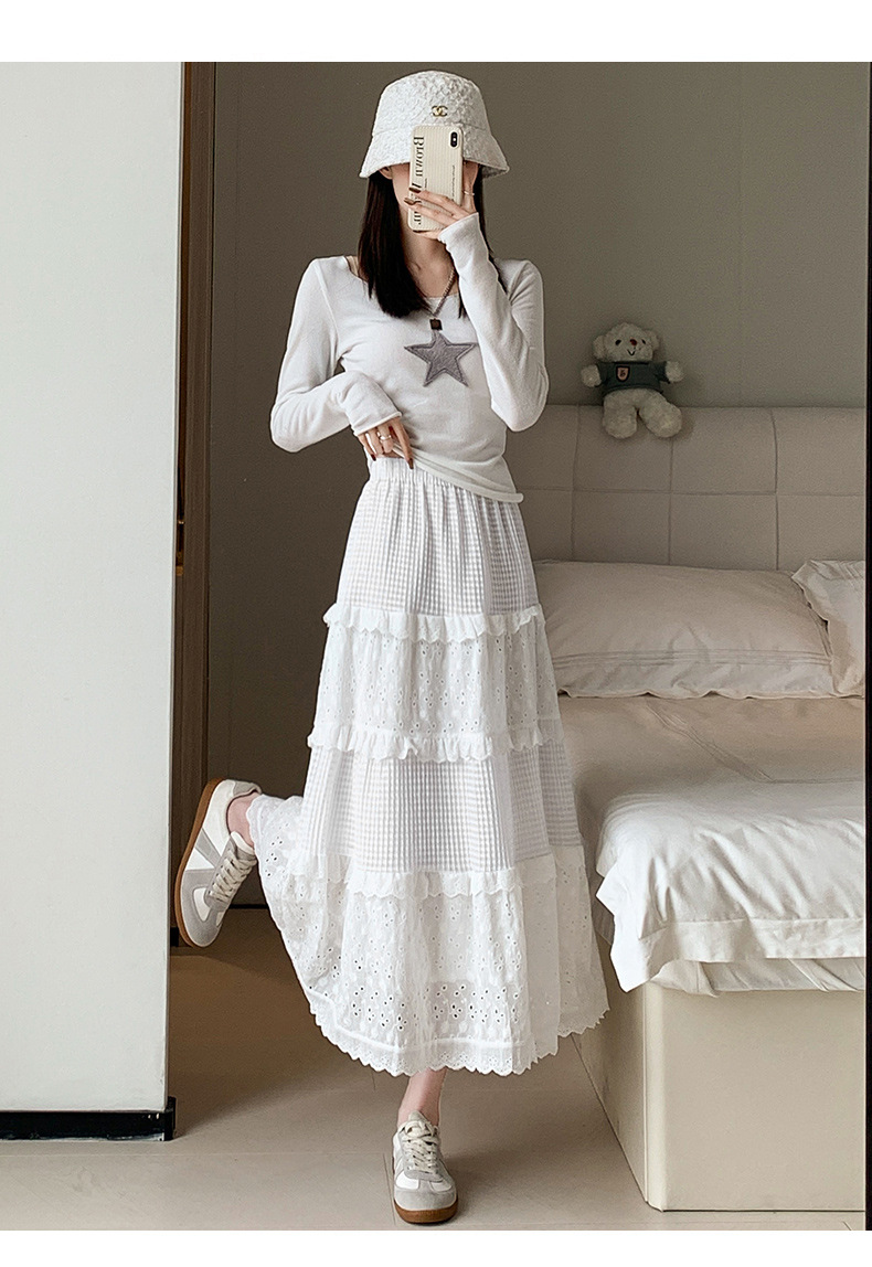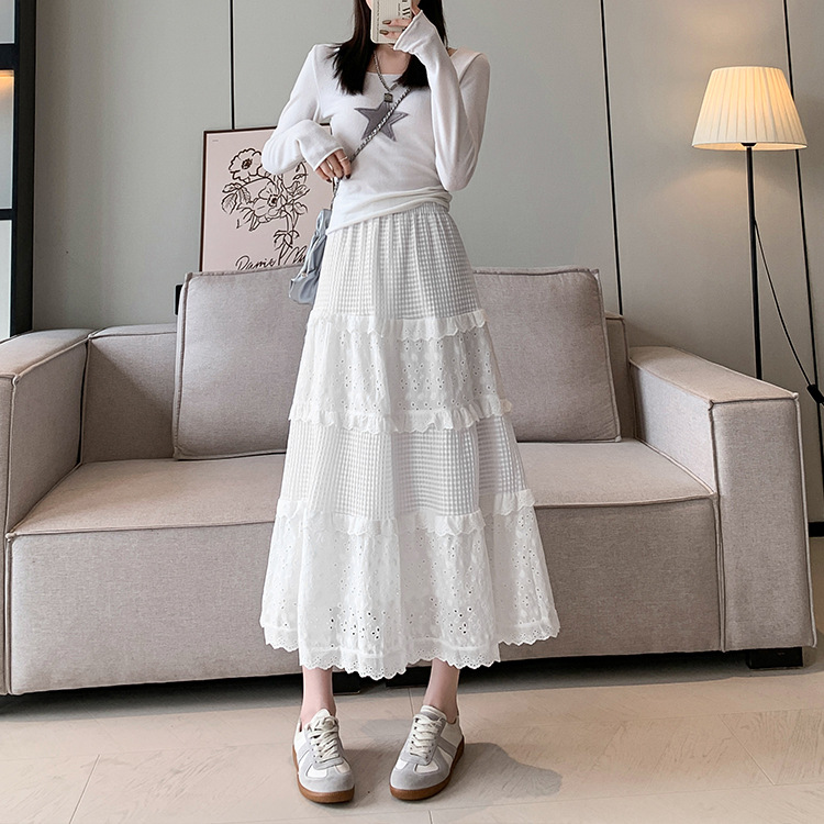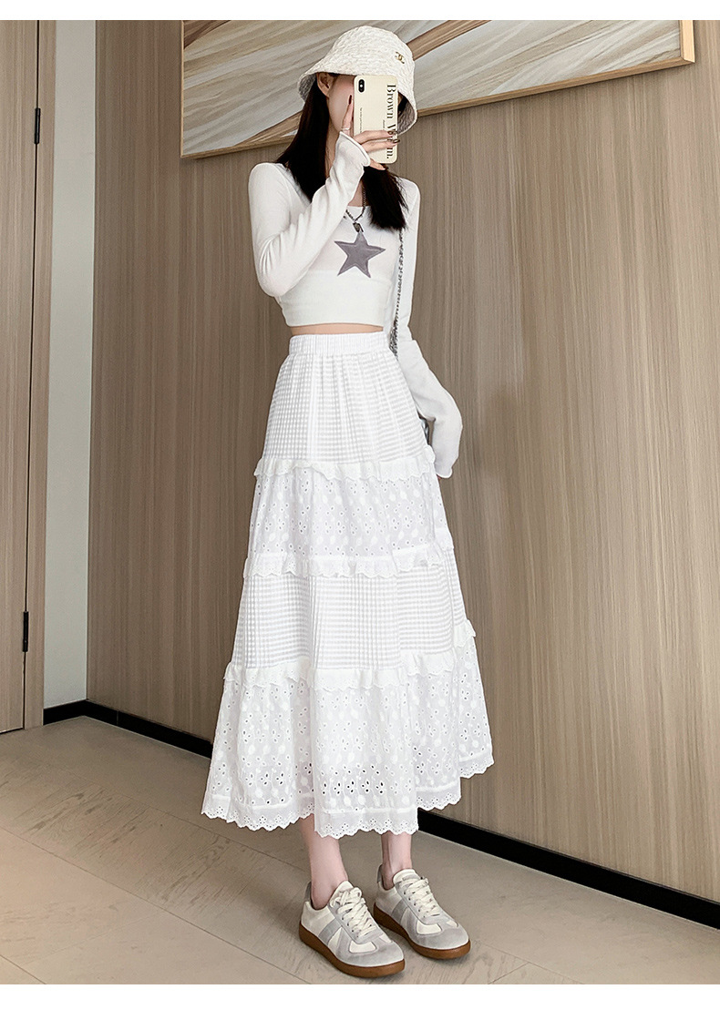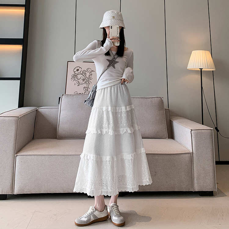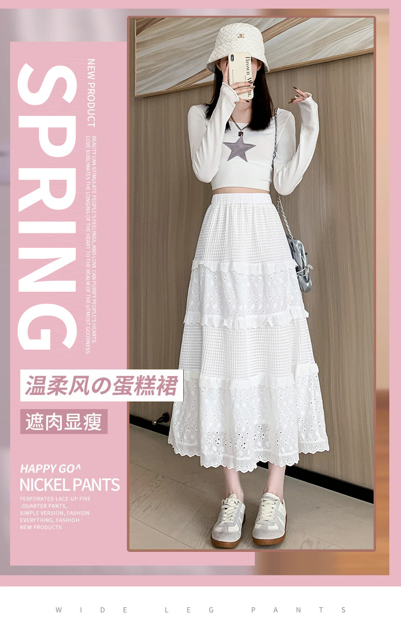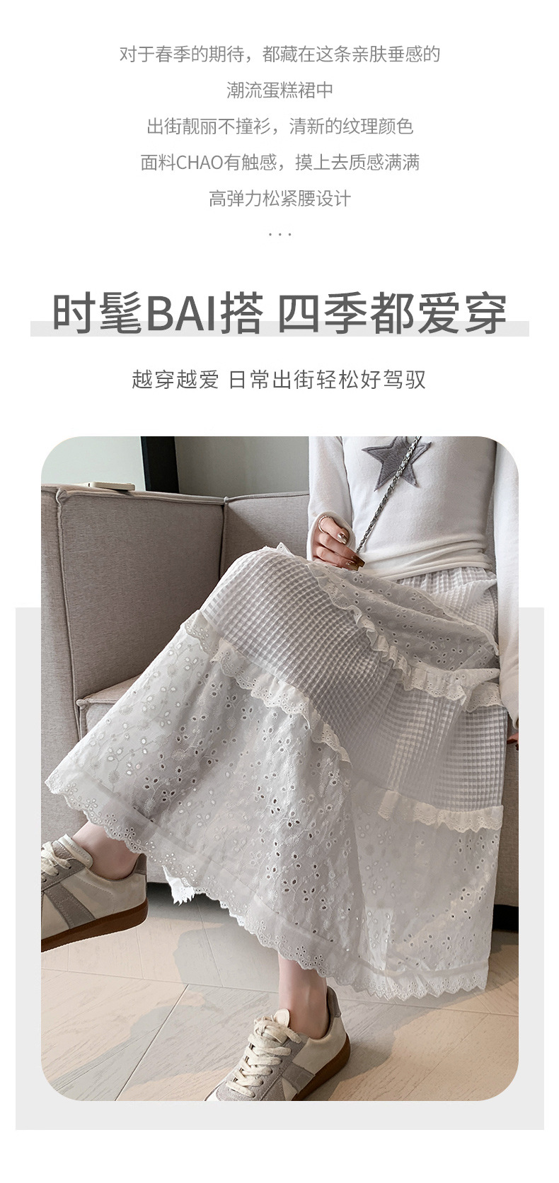【时髦BAI搭❗️温柔风の蛋糕裙】日常出街轻松好驾驭,秒变腿精❗️视觉拉伸腿部比例,塑形于无形之中,修身塑形随身而动,享受无束缚,气质蕾丝百褶裙显瘦,小个子网纱高腰a字半身长裙L
