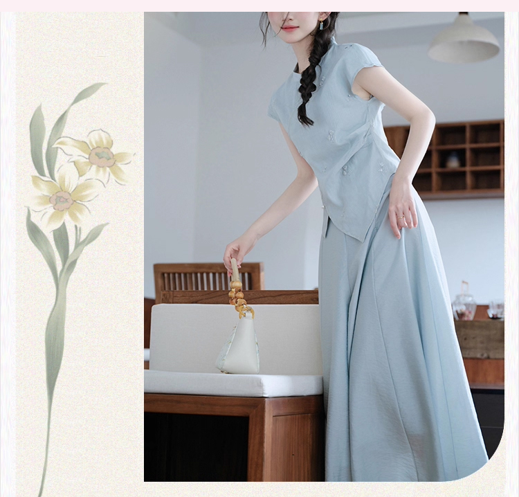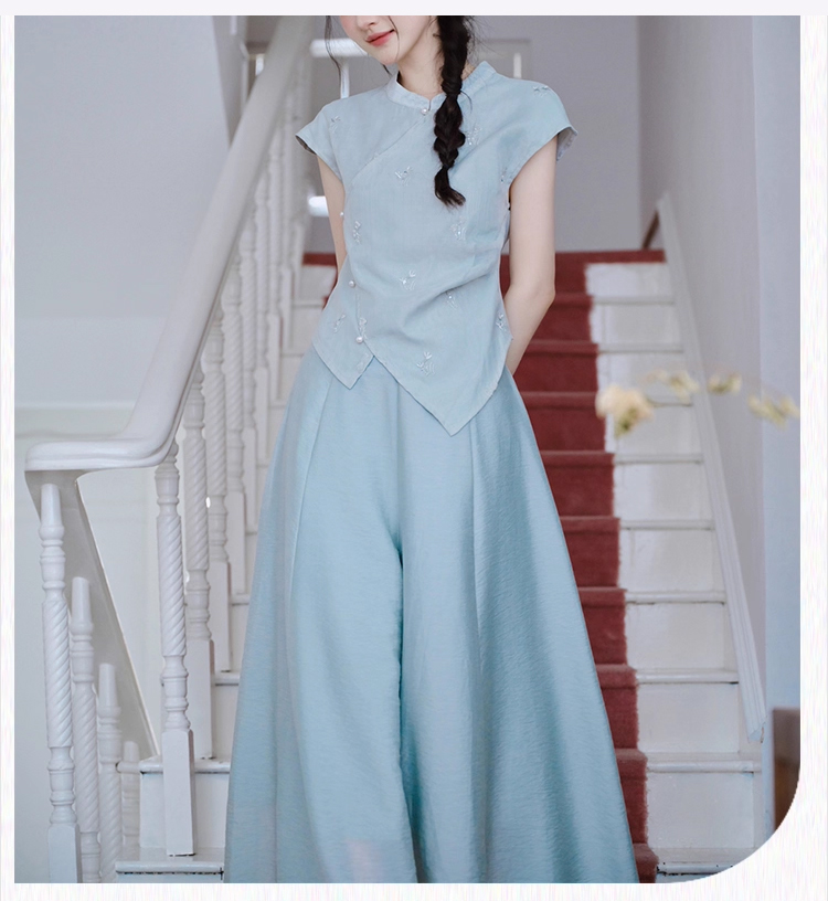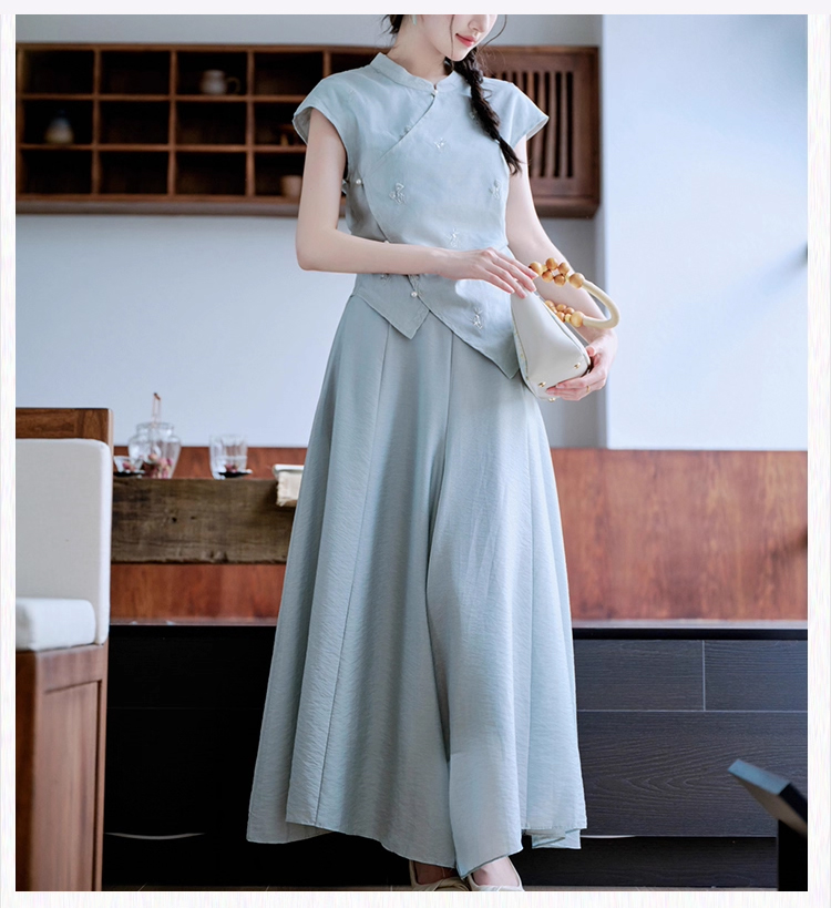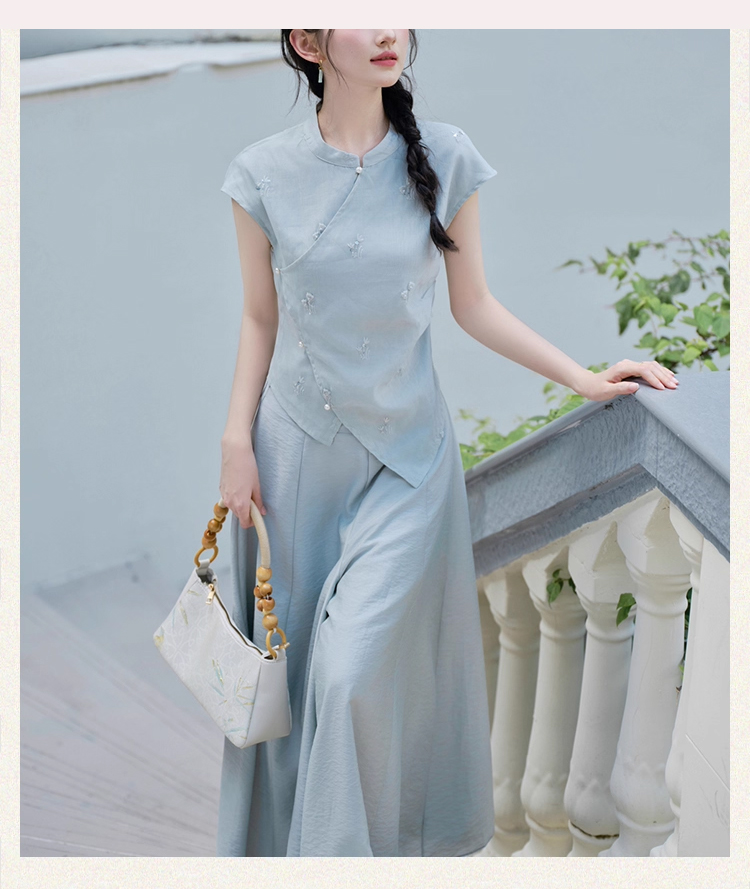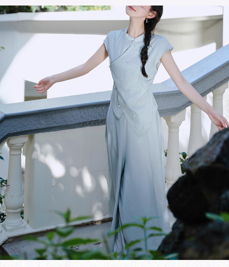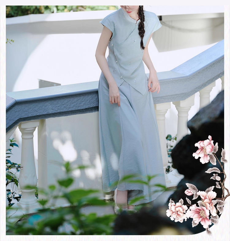 裁缝学苑AH81新中式旗袍套装不规则无袖小衫纸样阔腿裤裙裤打版