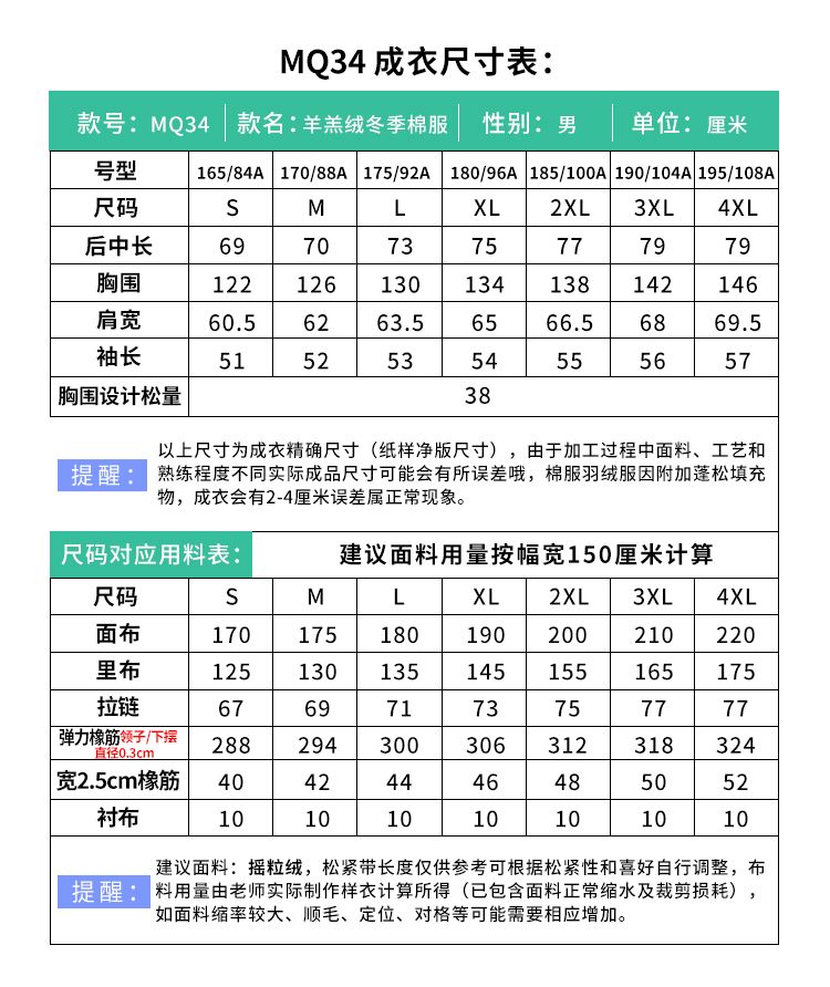 裁缝学苑MQ34摇粒绒外套纸样男秋冬羊羔毛棉服棉衣立领上衣样板