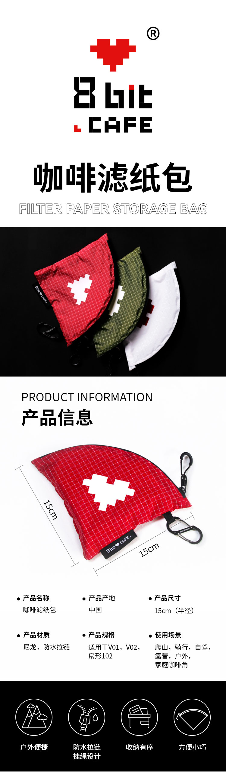 捌比特户外便携式V60咖啡滤纸收纳袋 滤纸收纳包防水防潮防尘袋