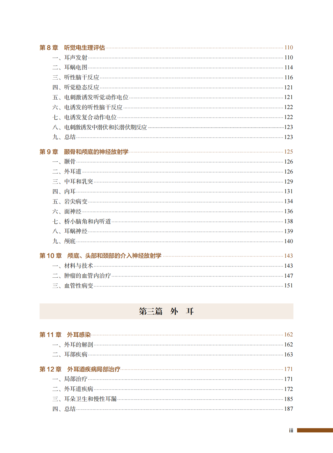 本书详尽介绍了耳部的应用解剖学、系统解剖学及相关疾病的生理病理学,并从分子机制、遗传学等方面对外耳、中耳、内耳及前庭平衡器官等方面做了全面讲解。同时,对耳显微科学、耳神经-侧颅底外科学、内耳疾病、听力修复及康复、听觉植入学、前庭疾病、面神经疾病等方面,就疾病的病因学、听力学及影像学评估、临床表现、诊断及治疗等方面进行了具体、深入的介绍和阐述。内容翔实、图文并茂,密切结合临床加以闸述,实用性与可读性强,可供耳科学及相关学科临床医师和研究人员参考阅读。