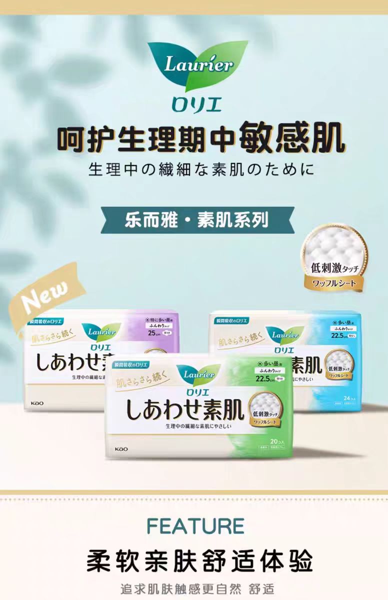 4楼Eubelle欧蓓 3包 花王乐而雅素肌日用卫生巾带护翼25cm×17片 吊牌价:36-108元 活动价:29.9-85元
