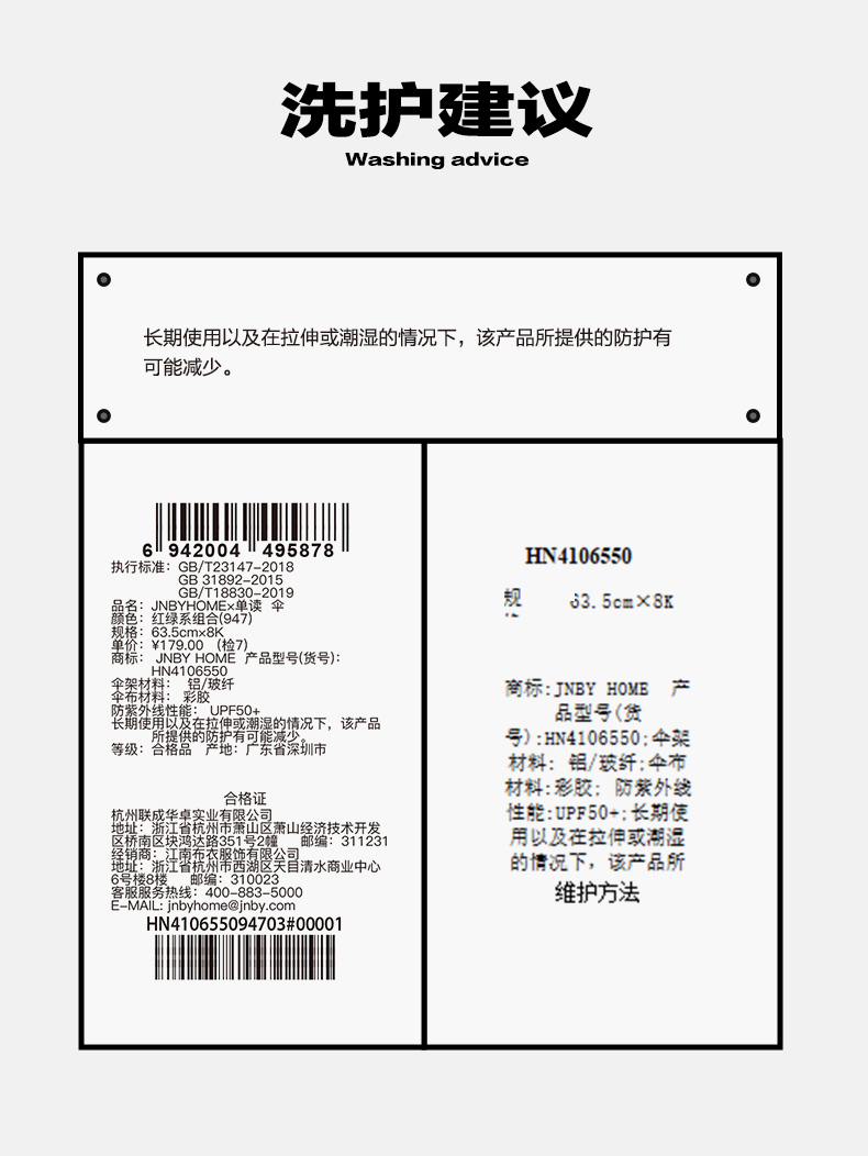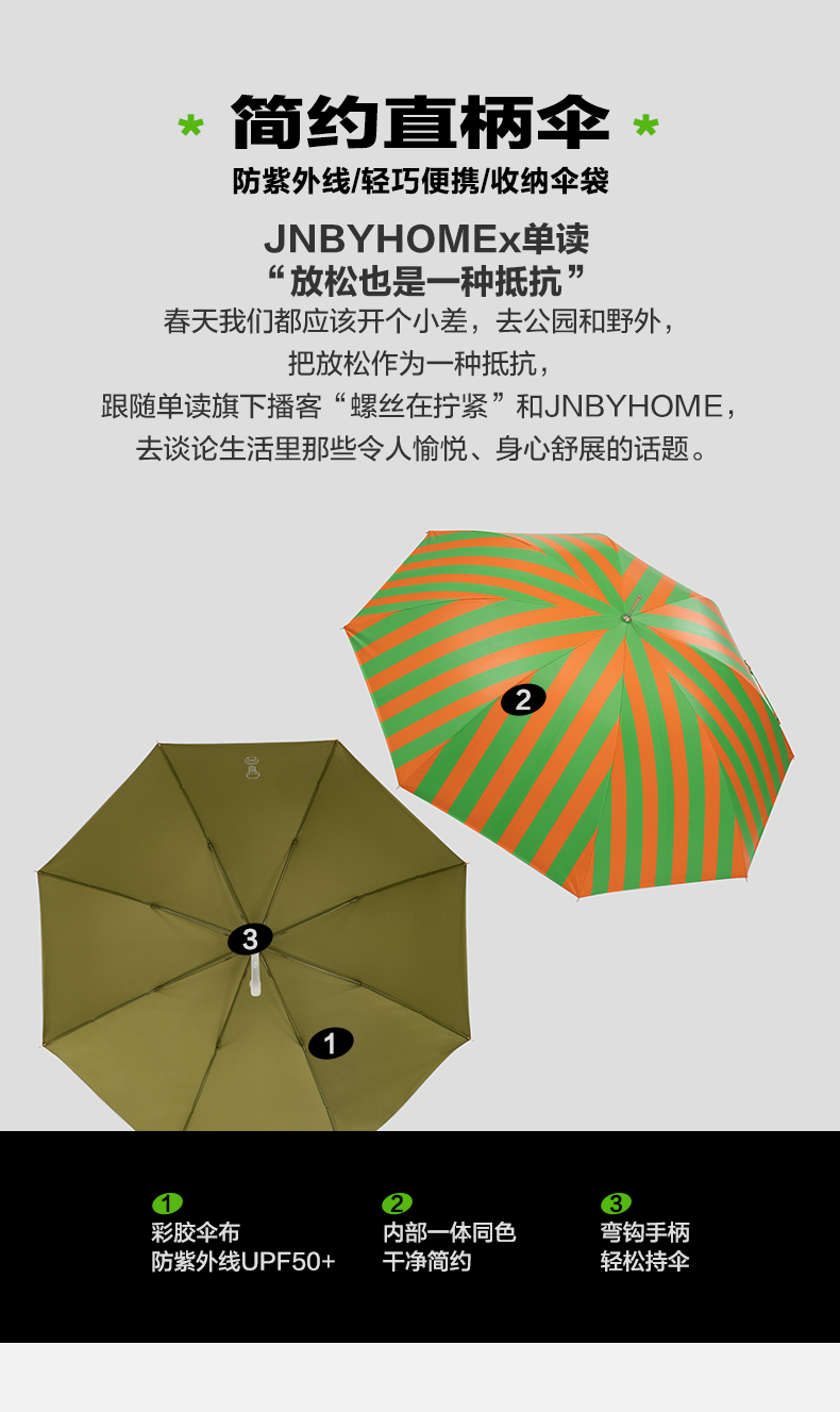 单读xJNBYHOME 联名伞 简约直柄伞长柄雨伞 防紫外线UPF50+