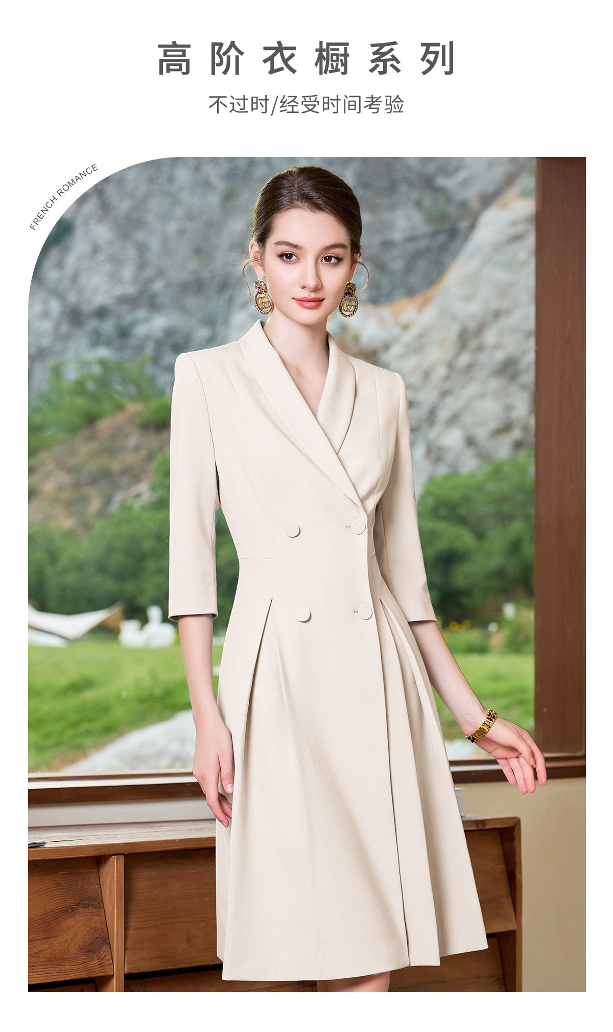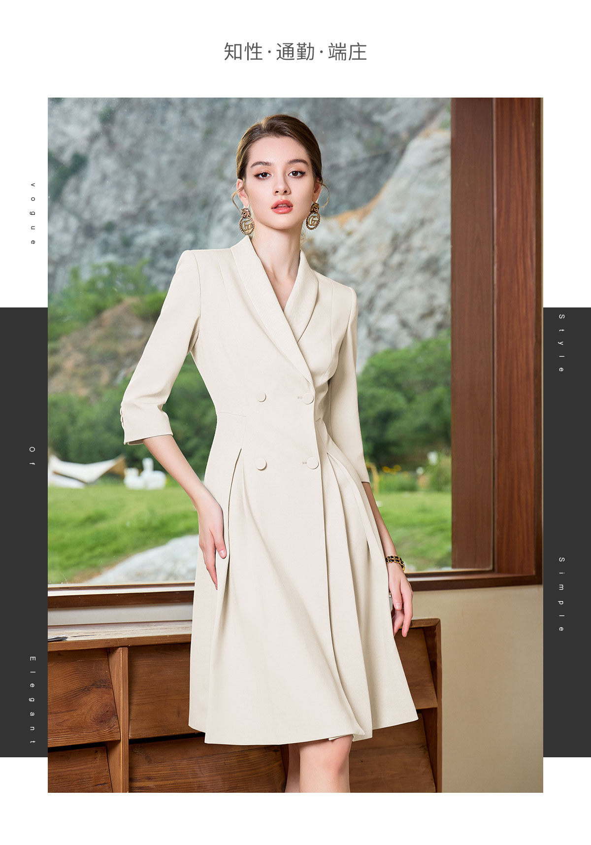 AD工作服正装女时尚通勤白领连衣裙2023新款七分袖西装连身裙收腰