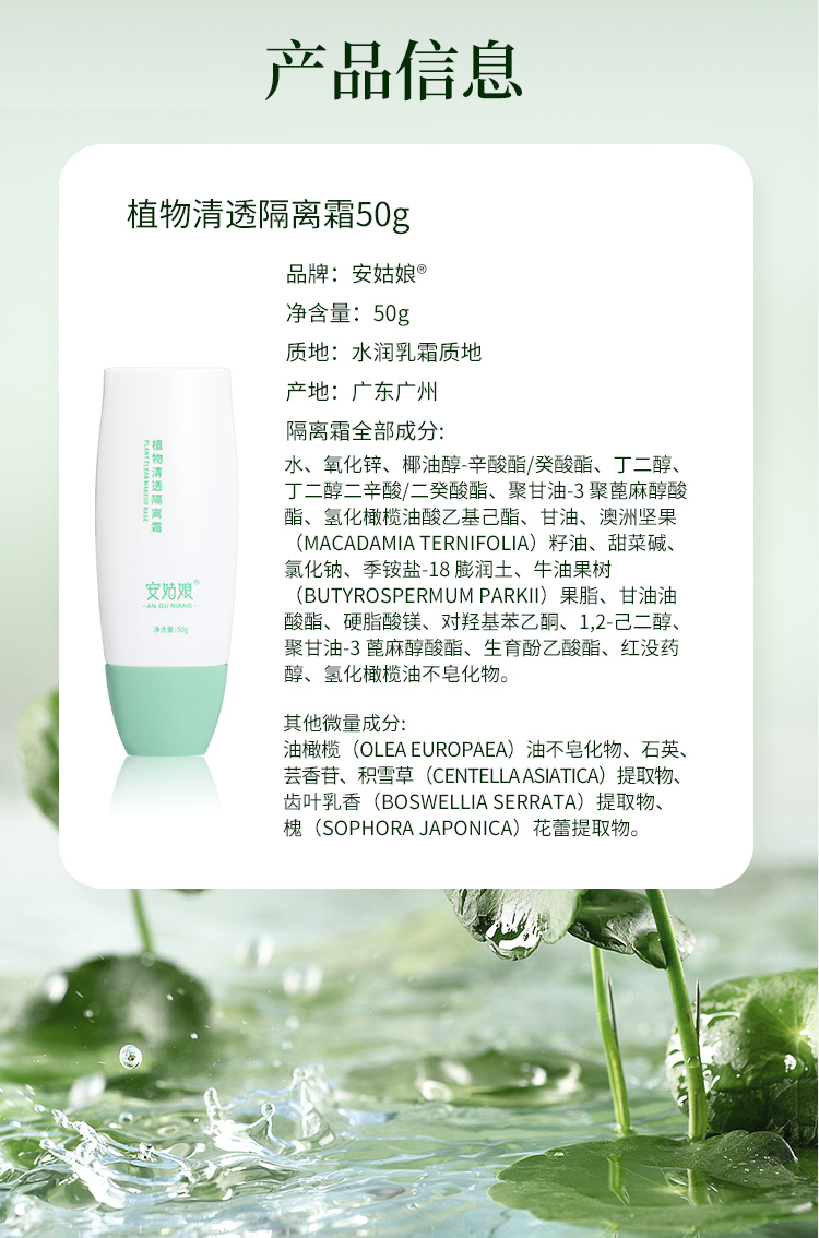 安姑娘植物清透隔离霜 清爽防护透气 净素 全身通用