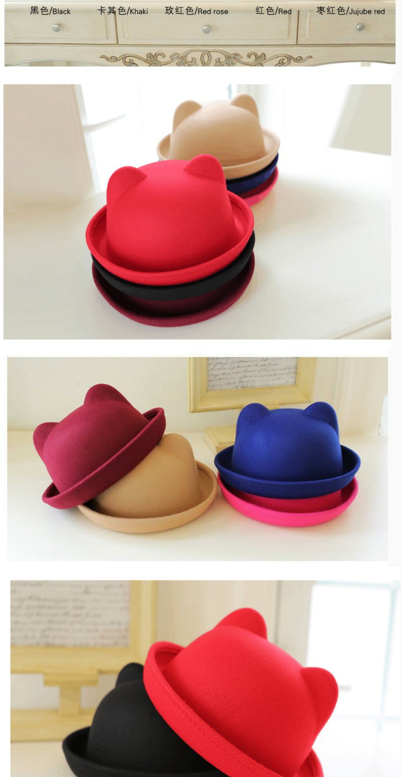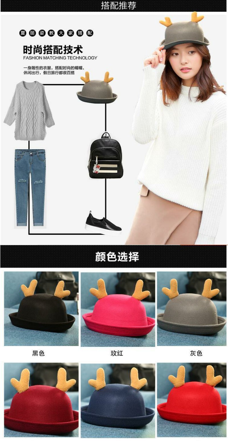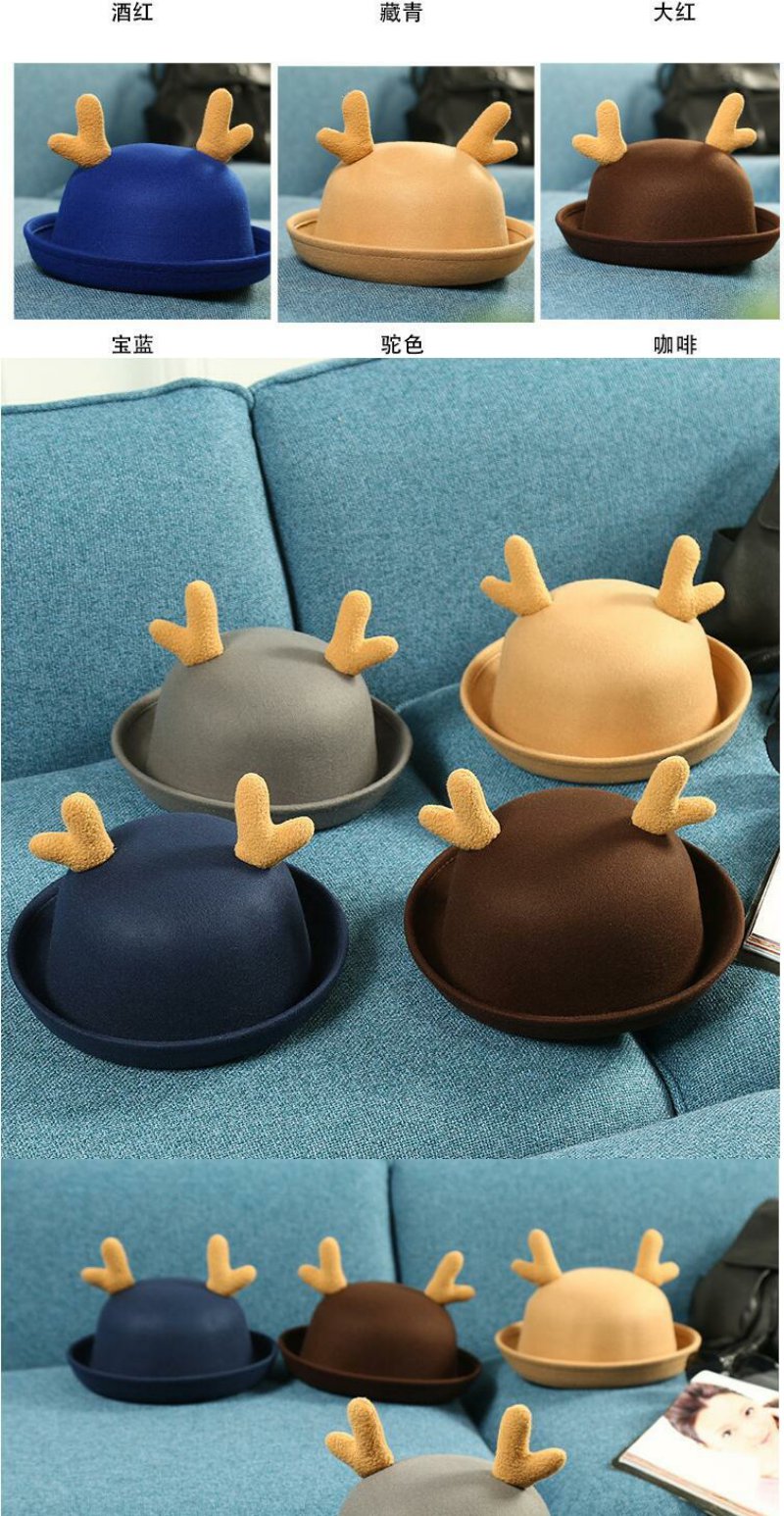 可爱鹿角耳朵毛呢盆帽亲子圆顶礼帽冬圣诞节