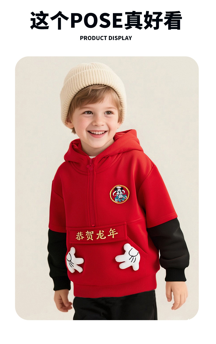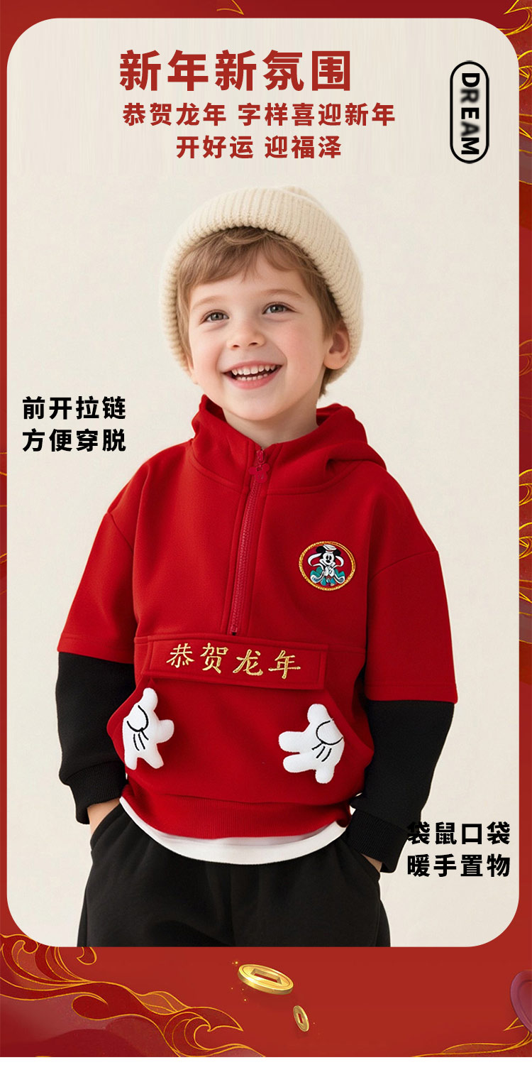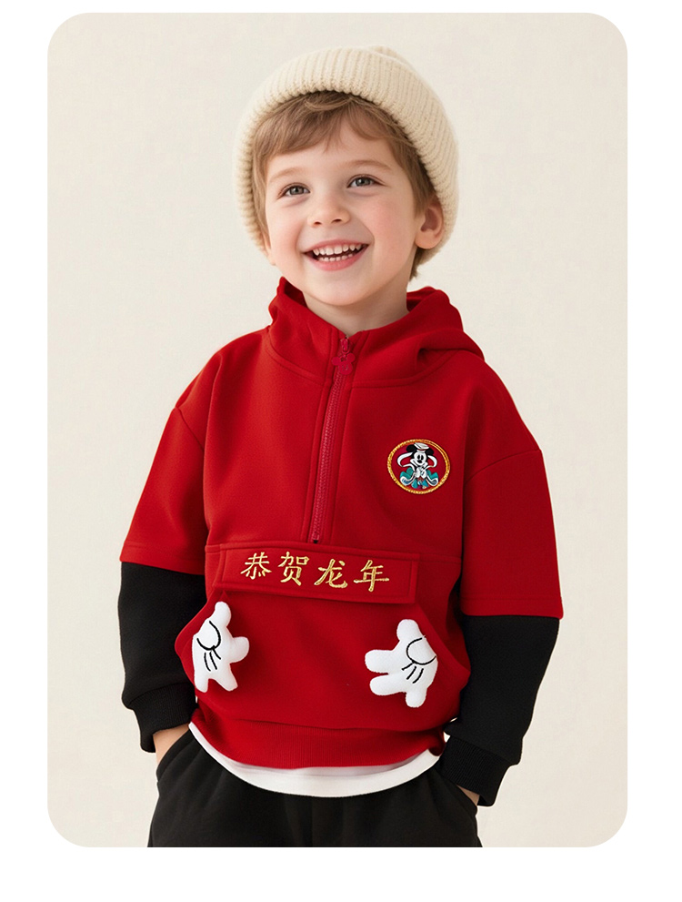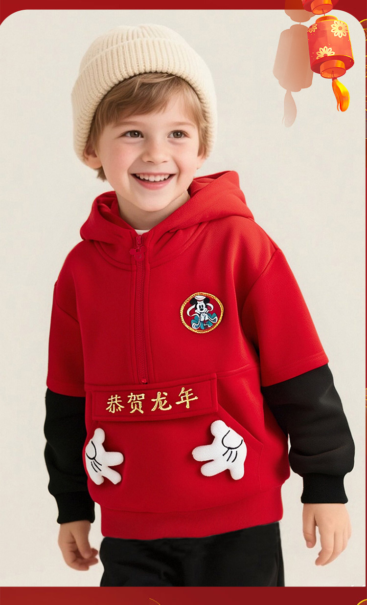 迪士尼儿童卫衣春秋款圆领套头男童上衣国风秋装洋气宽松男孩中大童装潮XD1DS030