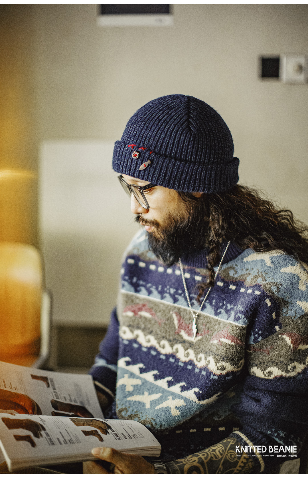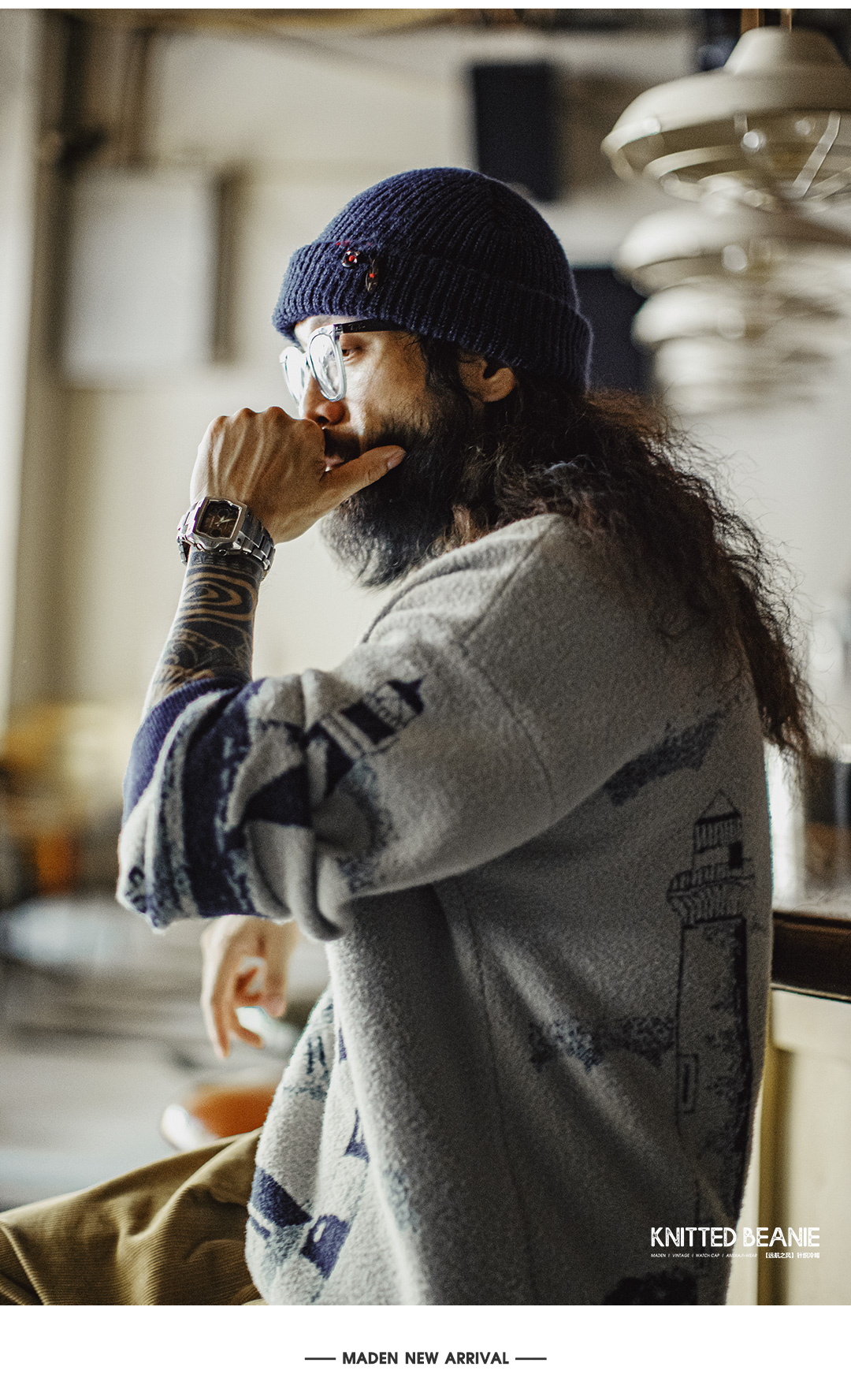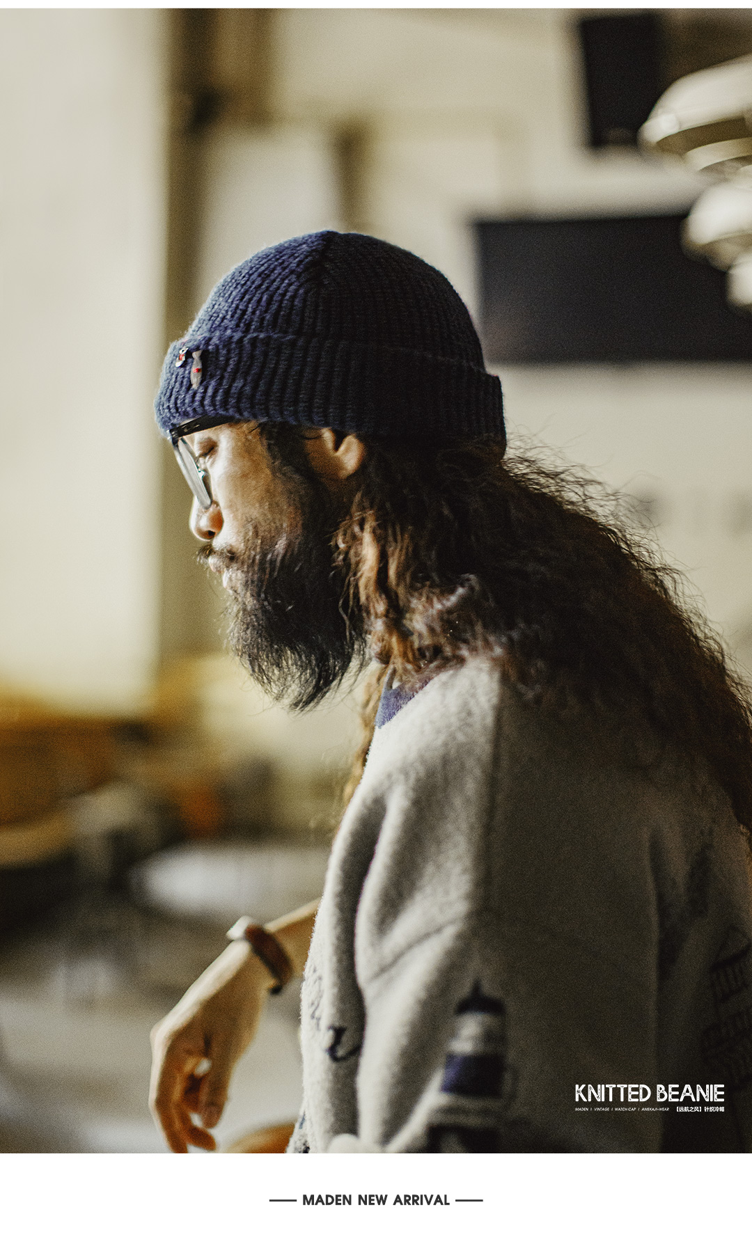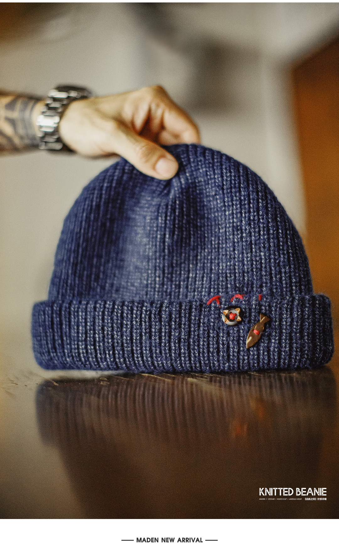 马登工装美式复古北极绒蓝色冷帽护耳防寒毛线保暖瓜皮帽子男秋冬