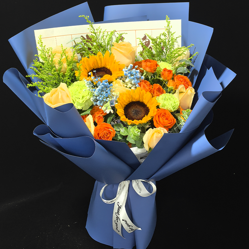 【高考加油】新鲜鲜花 高考花束向阳追光-高考必胜(向日葵2枝+香槟玫瑰7枝+配草)可备注送货时间