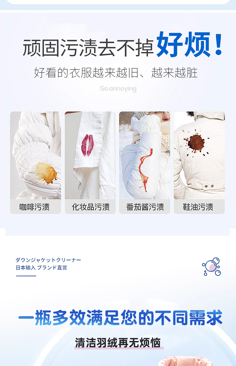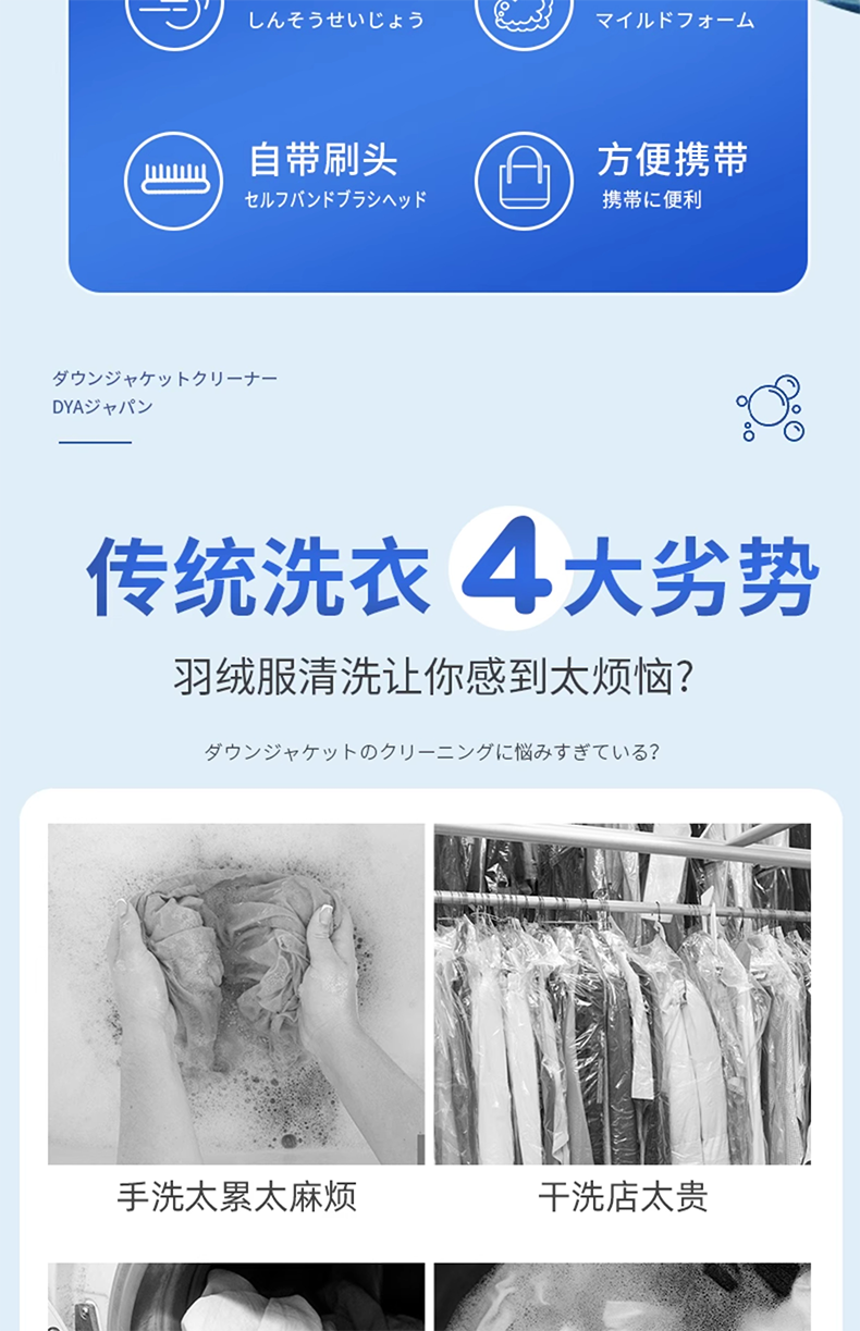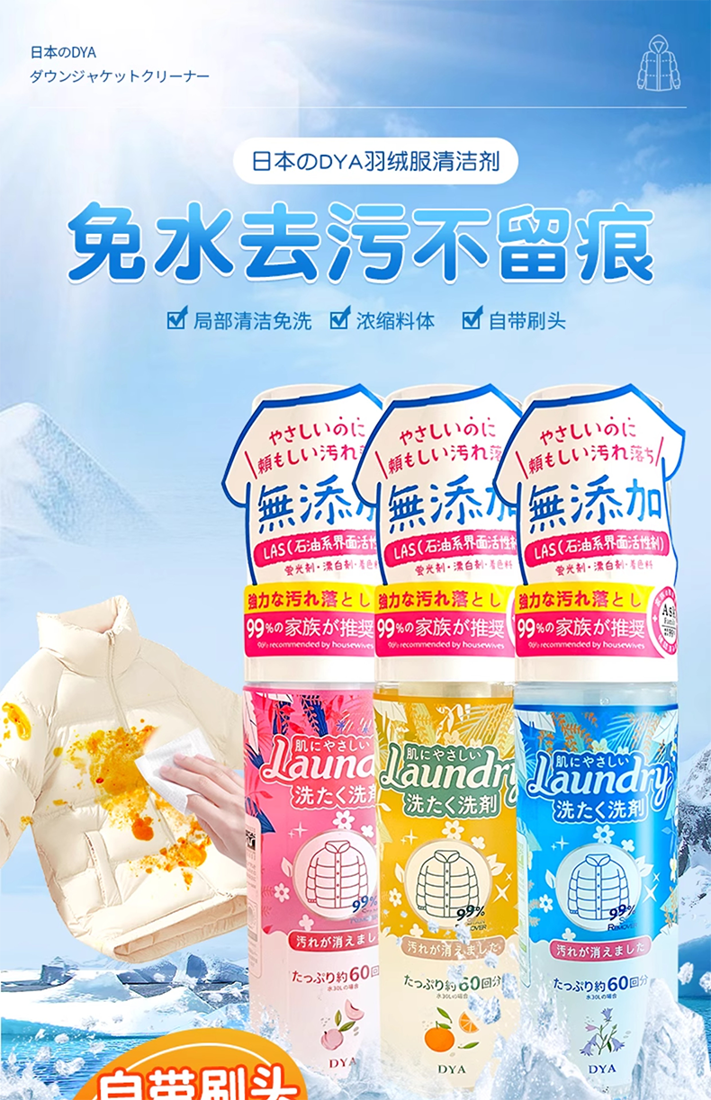 【特惠三支装】日本DYA羽绒服清洗剂 去除多种顽固污渍清洁污垢不渗透布料 不伤羽绒服 无需水洗 擦完就能穿