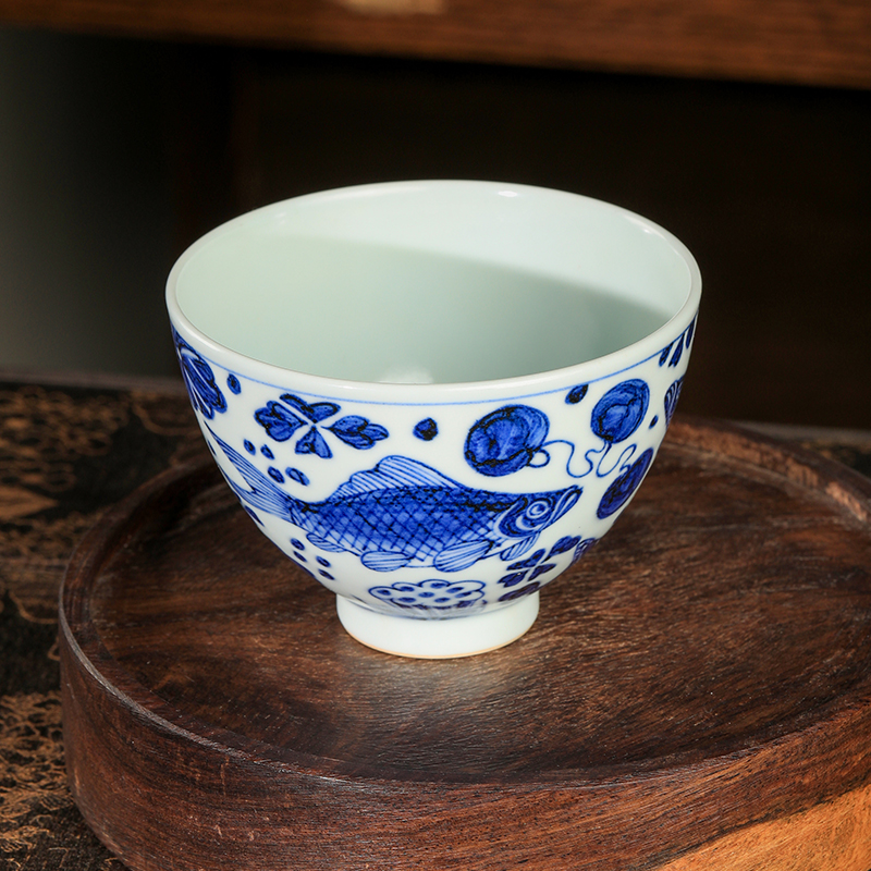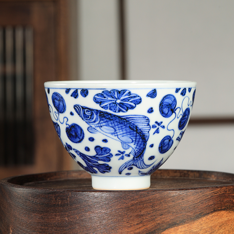 溪兰仰元-鱼藻纹大鸡心杯