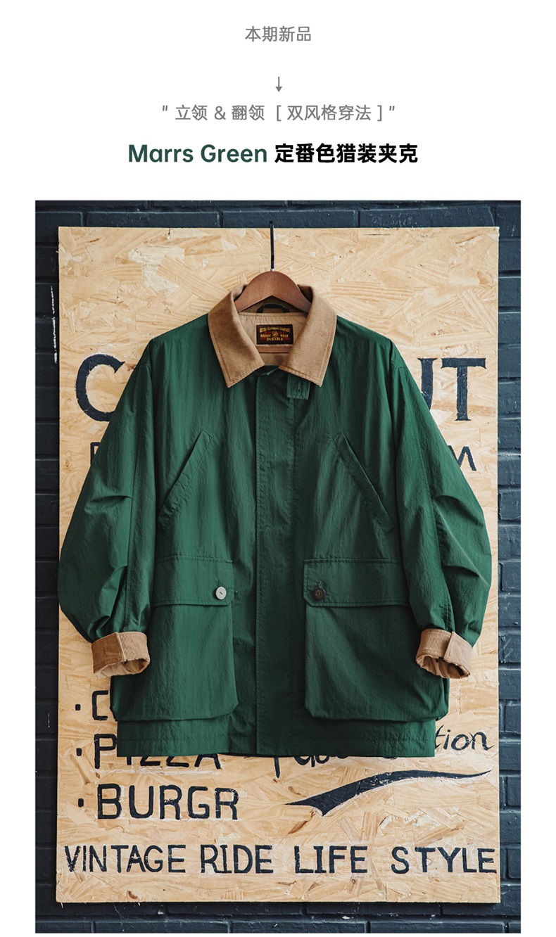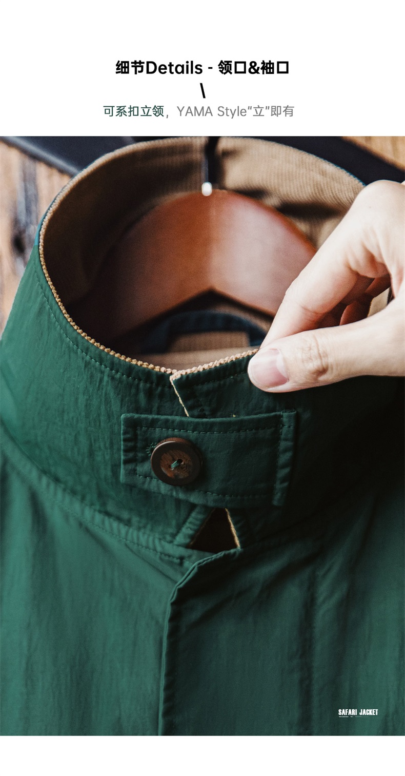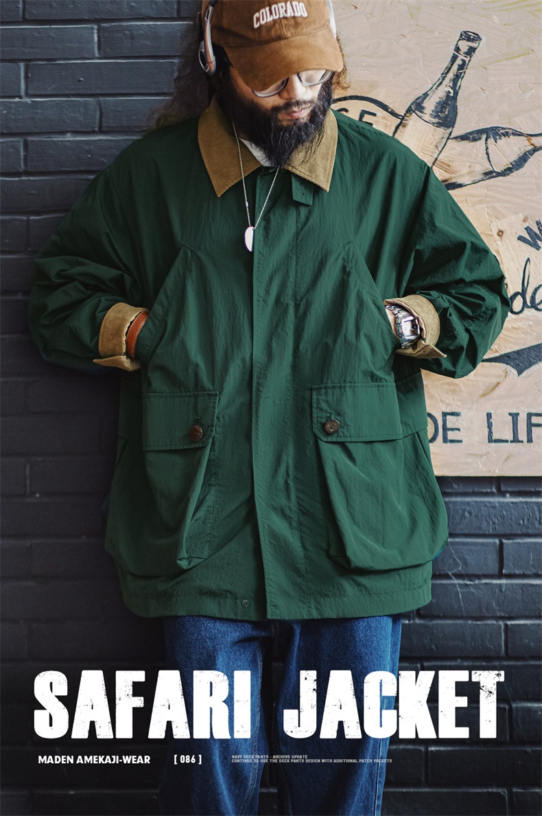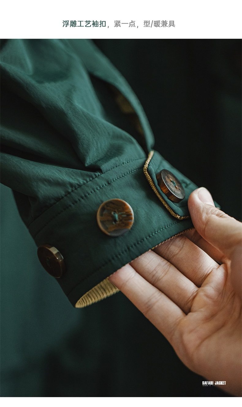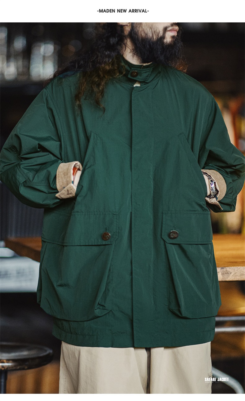 工装优选美式复古多口袋猎装夹克宽松撞色翻领中长款风衣外套男秋