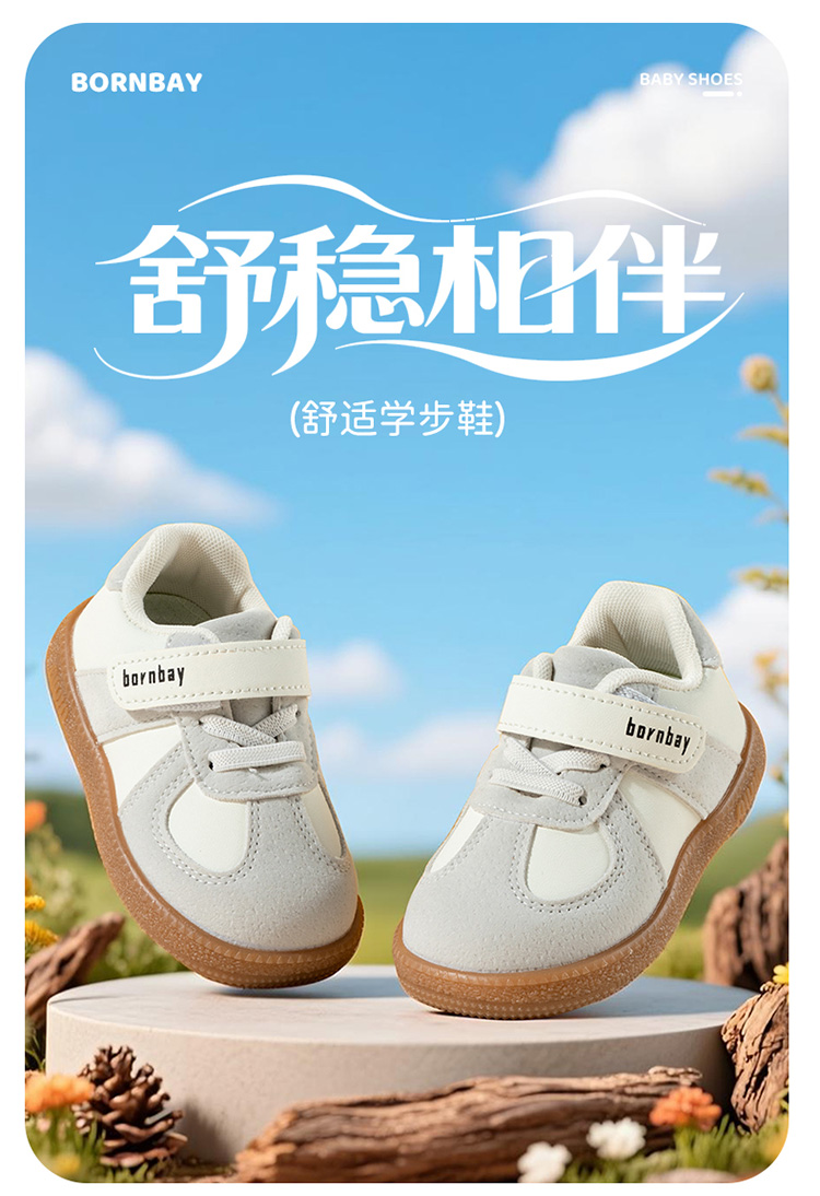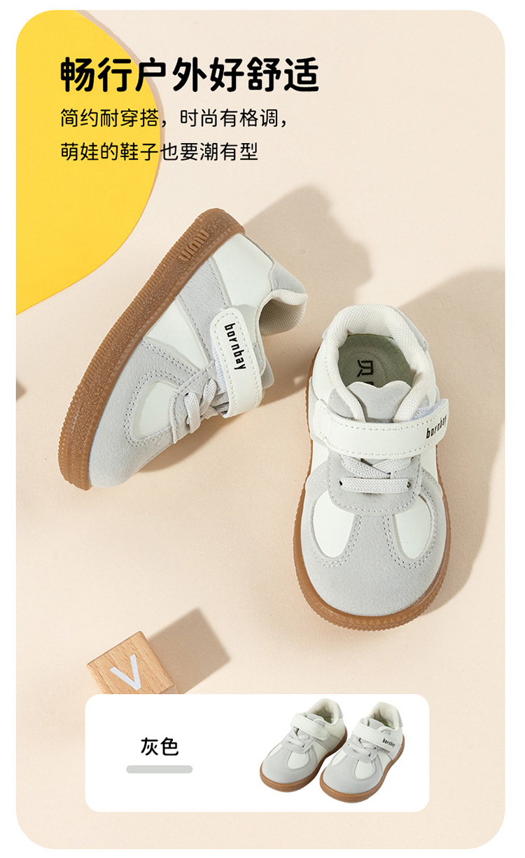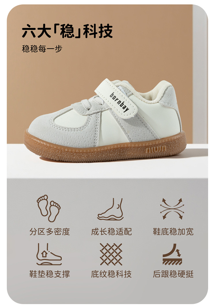 贝贝怡2025秋新款男宝防踢撞学步技能鞋软底轻便男童复古运动休闲鞋ZB4EX003