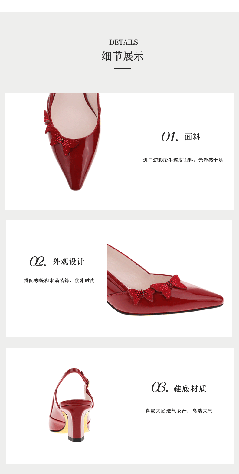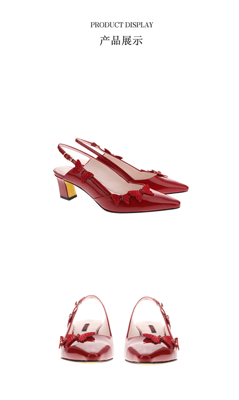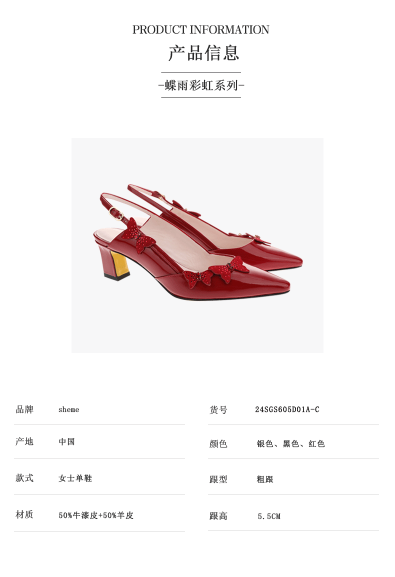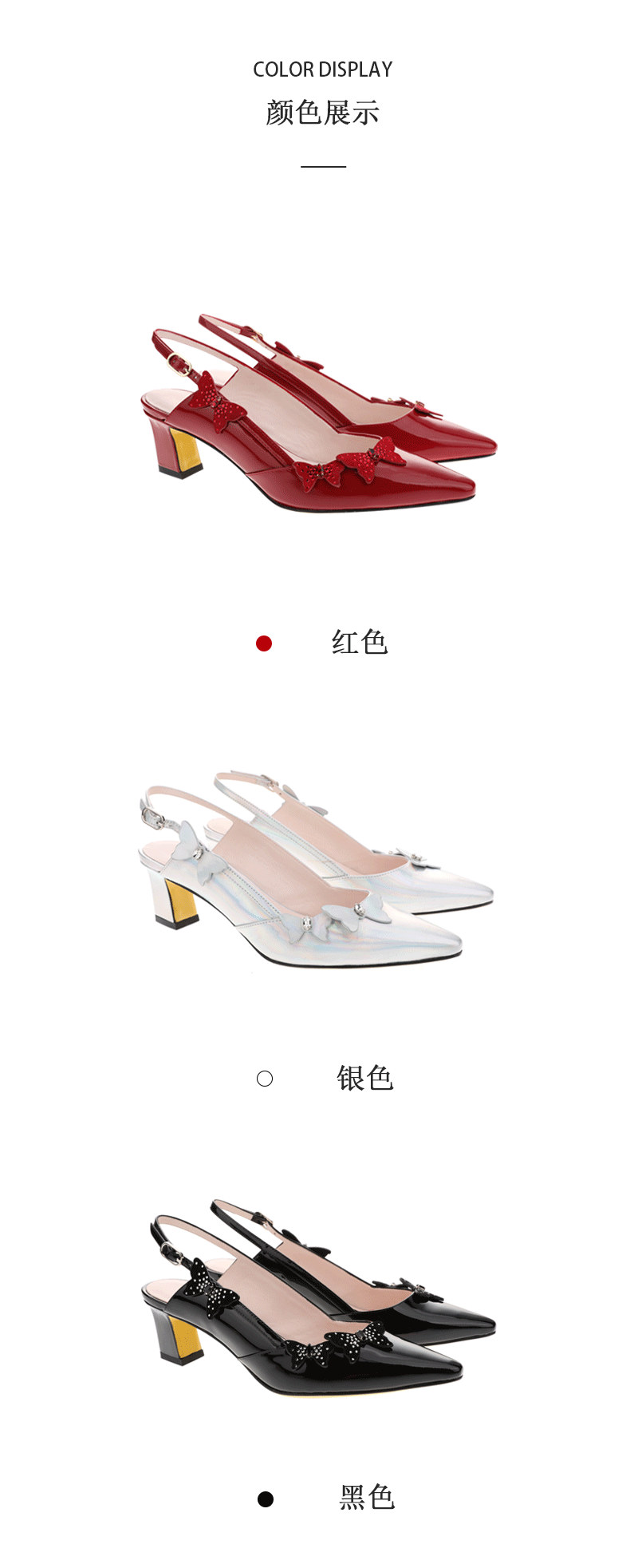 sheme蝶雨彩虹系列进口漆皮水晶蝴蝶结点缀优雅时尚女士单鞋可定制