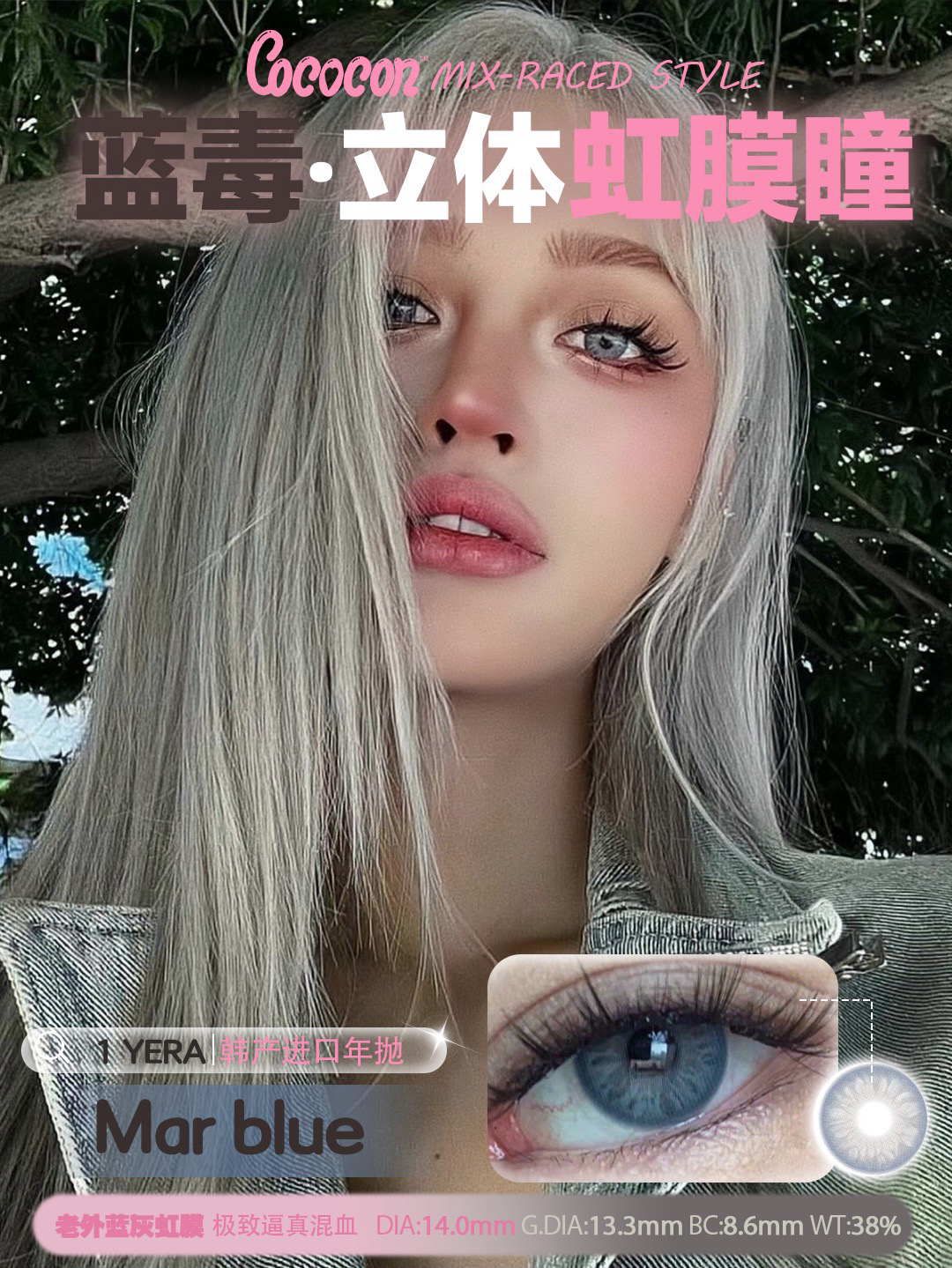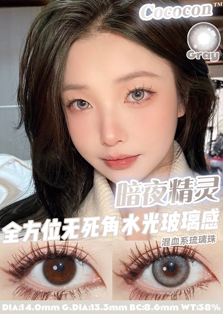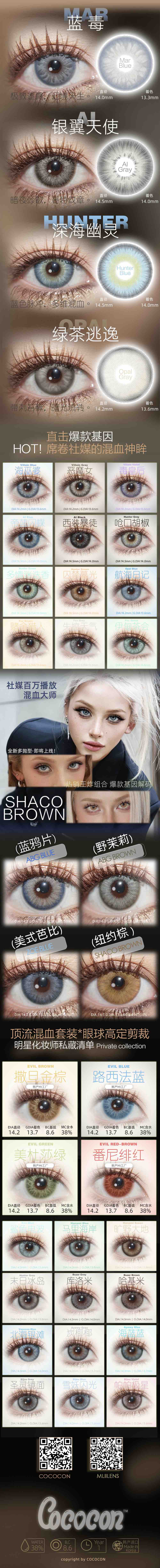 Cococon&Mliilens年抛奶油透灰/焦糖栗巧 爆款 帝蓝闪蝶/路西法蓝/银翼天使/美杜莎绿/番尼绯红/麦麦黑晶茶/摇滚仙草/绿茶逃逸/航海日记/北海银滩/纽约棕 混血显色美瞳/纽约绿等