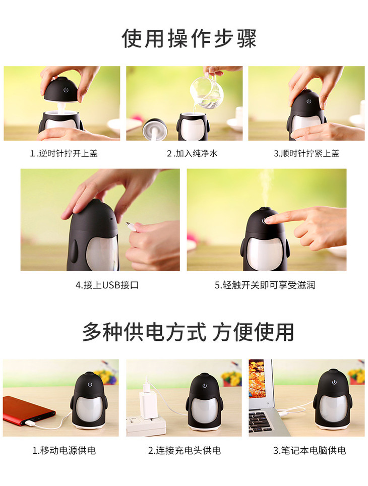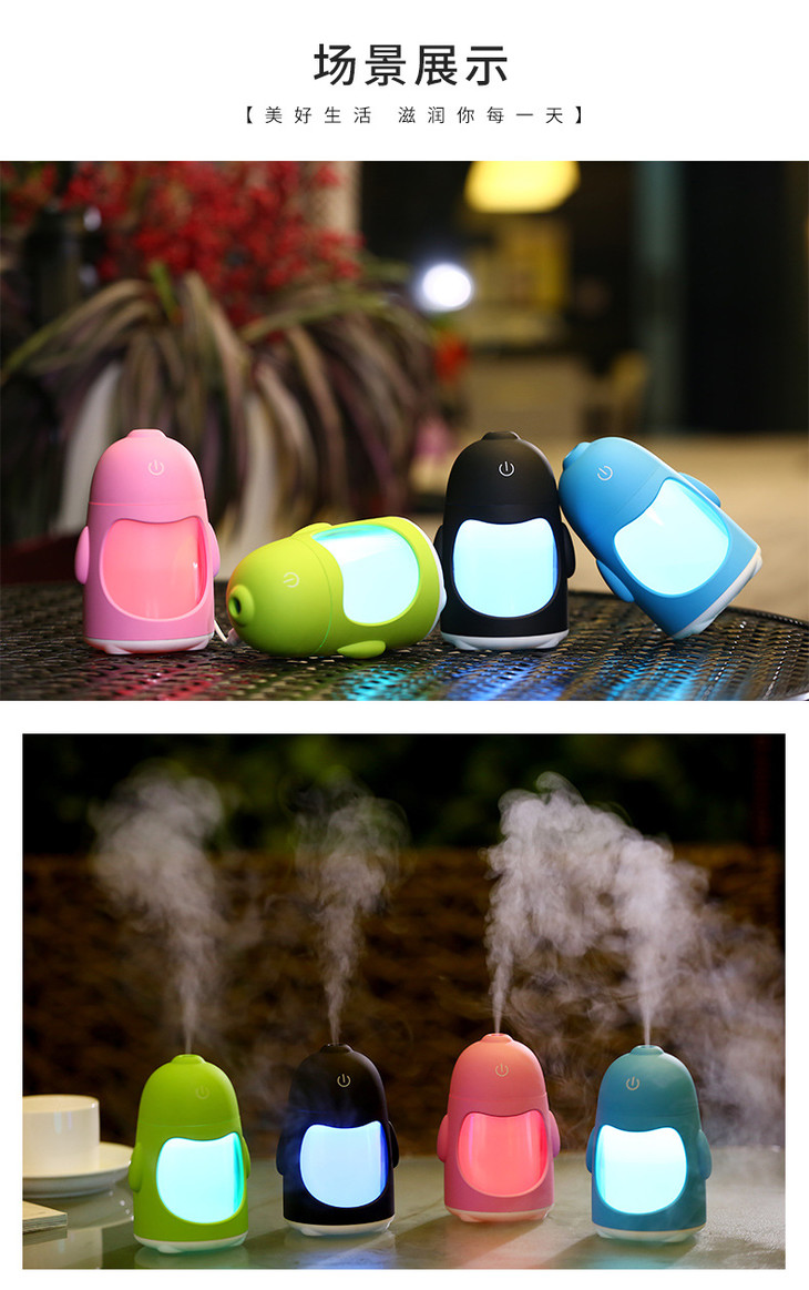 【加湿器】 企鹅加湿器 usb迷你七彩夜灯加湿器 创意卡通空气净化器 小雾化器